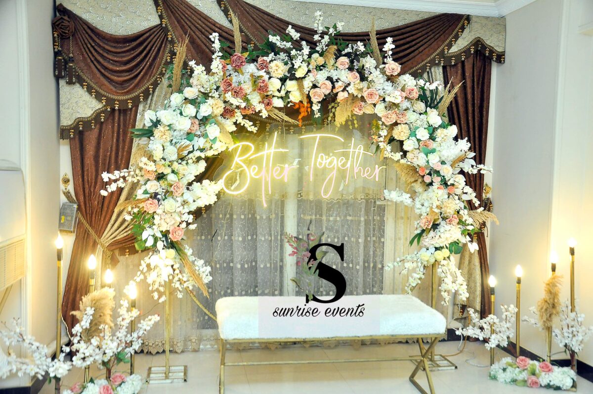 من ناحية الميزانية، Sunrise Events عندهم مرونة كبيرة. ممكن يقترحوا استخدام ورود موسمية بدل الأنواع الغالية، أو الاعتماد على توزيع إضاءة قوي يغني عن تفاصيل ديكور مكلفة. الفكرة عندهم إن الشكل النهائي يبان أنيق وشيك وفي نفس الوقت مناسب لإمكانيات العروسين.