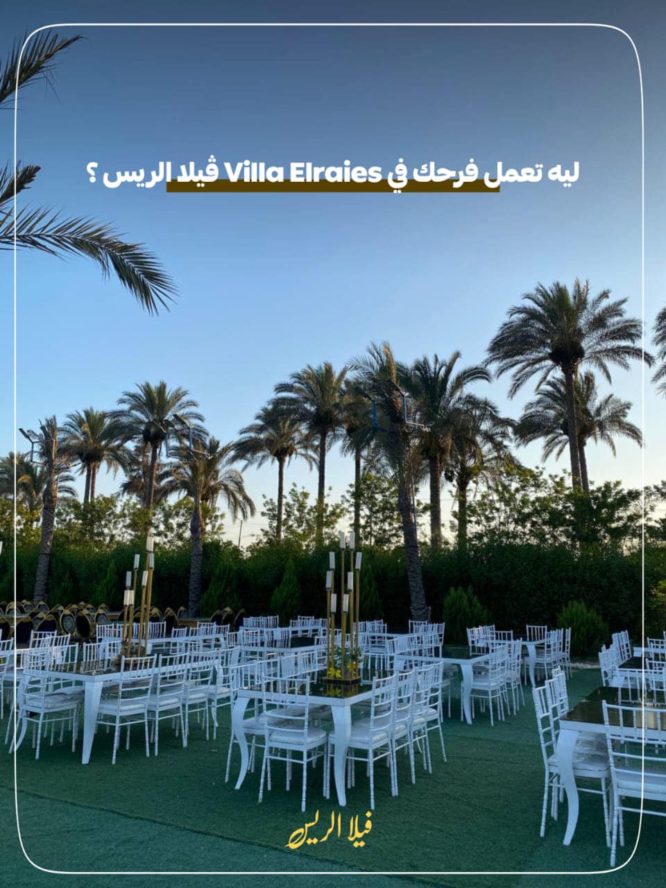 لو بتدور على مكان راقي وسط أجواء هادية وطبيعة جميلة، فيلا الريس هتكون من أفضل الخيارات ليومك المميز. الفيلا مصممة علشان تقدم تجربة مختلفة عن القاعات التقليدية، فيها خصوصية وأناقة وتنظيم عالي يخلي المناسبة مثالية من كل ناحية.