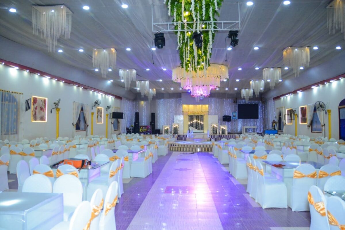 القاعة بتستوعب عدد كبير من الضيوف، مع توزيع للطاولات والكراسي بشكل منظم يخلي كل الحاضرين مرتاحين.