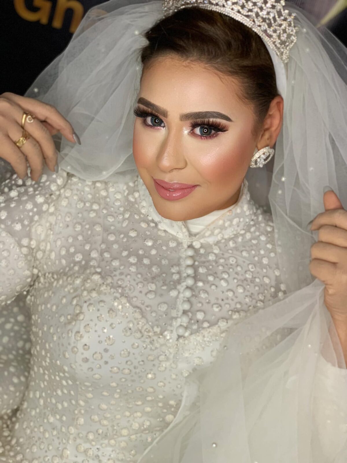 الميكب هنا بيكون مكمل لكل الخطوات اللي قبلها، والهدف دايمًا إن الشكل يطلع متناسق ومناسب لملامح العروسة ونوع بشرتها. التركيز بيكون على إبراز الجمال الطبيعي من غير تحميل أو مبالغة، علشان العروسة تحس إنها على طبيعتها وواثقة في نفسها.