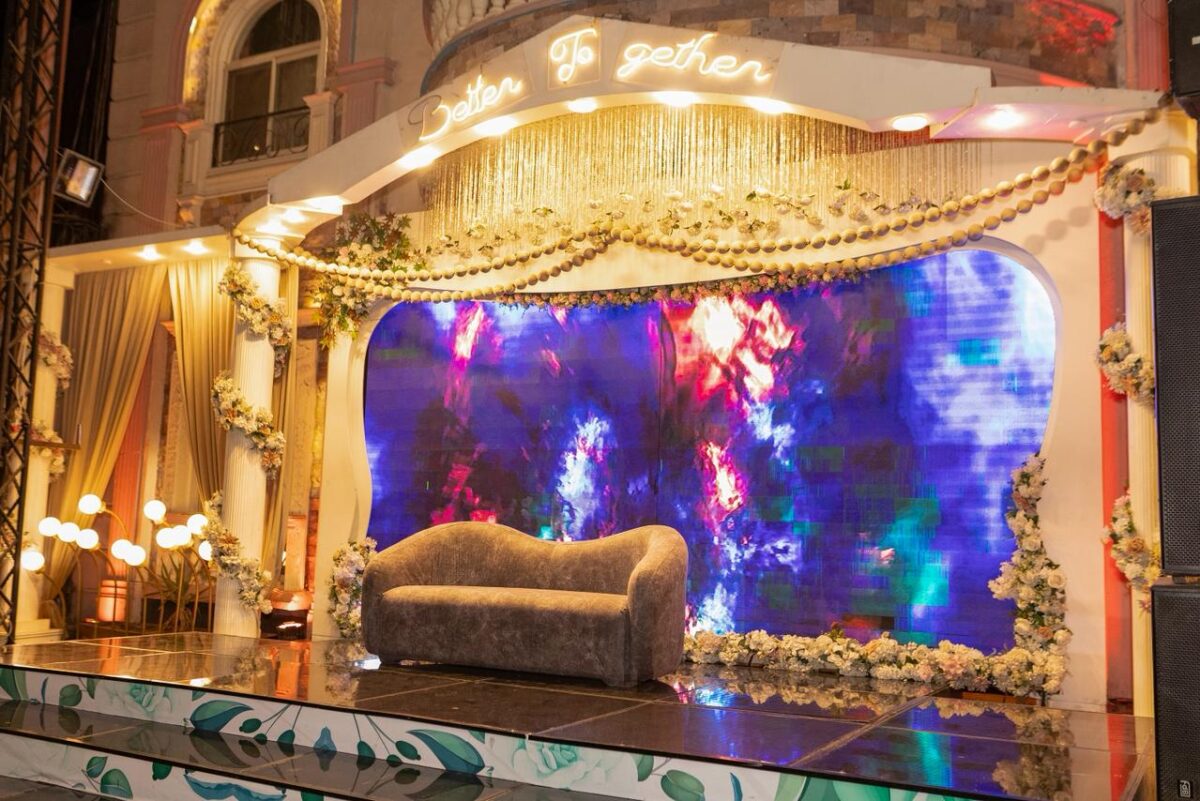 الكوشة في فيلا الماسه ليها طابع مختلف لأنها بتتعمل غالبًا بشكل بسيط وراقي يتماشى مع التصميم العام للمكان. سواء العروسة بتحب ورود، أو إضاءات ناعمة، أو ديكور مودرن بألوان فاتحة، الفريق اللي بيظبط الديكور بيعرف ينسّق كل حاجة مع المكان بشكل يخلي الشكل النهائي ناعم وجميل. أقل تفاصيل بتبان لأن الخلفية نفسها راقية ومش محتاجة إضافات كتير.