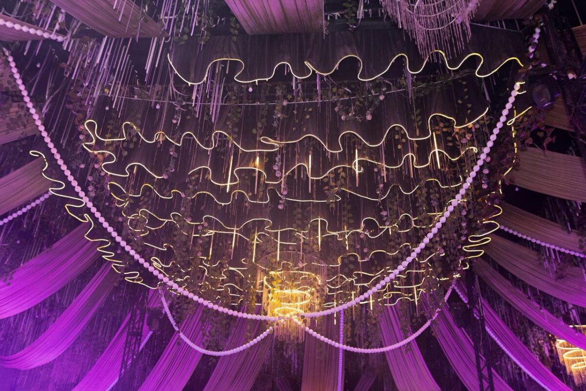 الدخلة والرقص بيتعملوا في مساحة واسعة، وده بيسمح للعريس والعروسة يتحركوا براحتهم ويعملوا فقرتهم بشكل جميل وواضح. الممر الكبير بيخلي لحظة دخولهم ليها حضور قوي، خصوصًا مع الإضاءة اللي بتتغير مع الموسيقى وتعمل شكل رومانسي رايق. الضيوف كمان بيقدروا يشوفوا كل حاجة بوضوح لأن المكان مترتب بطريقة تخلي الرؤية سهلة من أي زاوية.