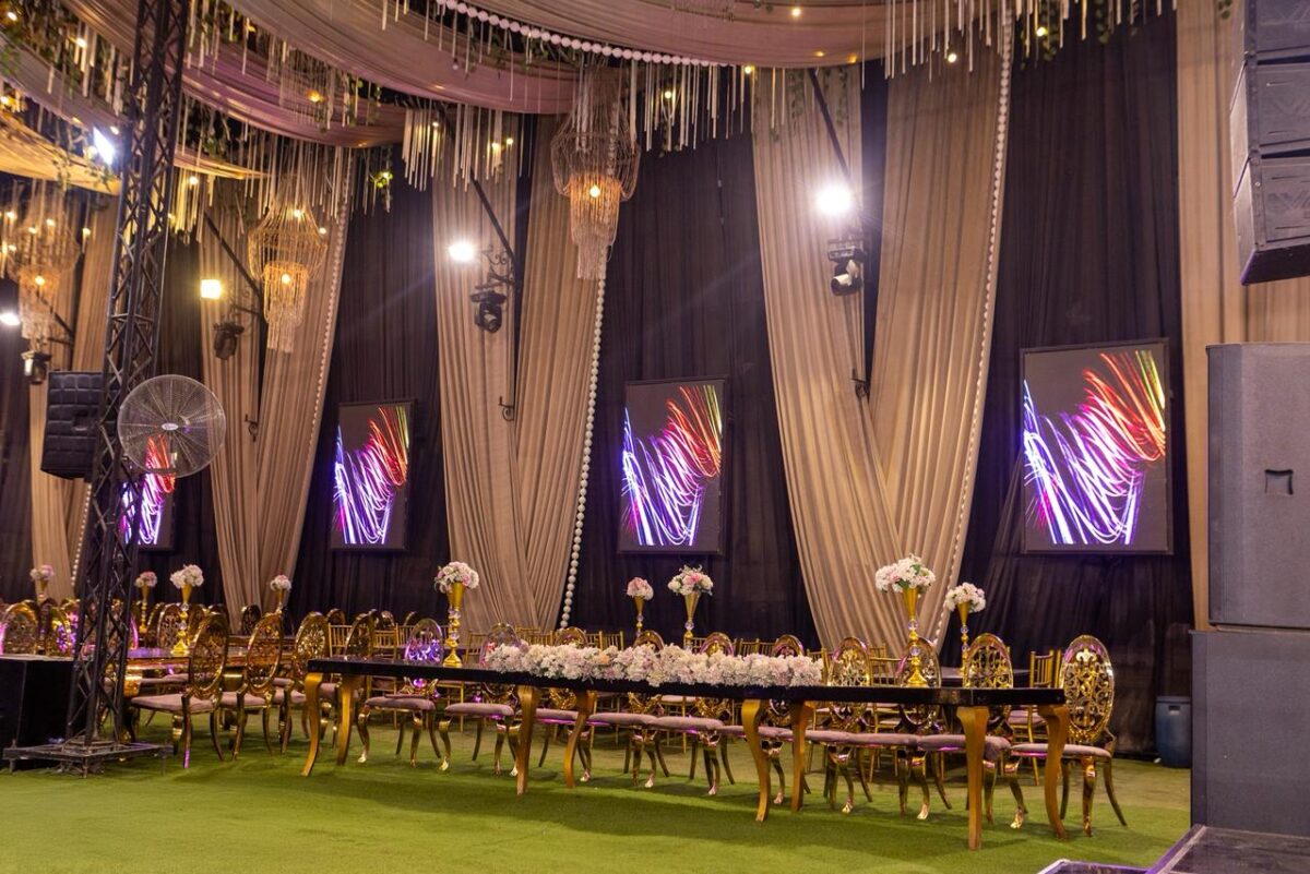 مساحة الدخلة والرقص في Porto Diamond كبيرة ومترتبة كويس، وده بيسمح للعروسة والعريس يعملوا زفة قوية من غير ما يحسوا إن المكان ديق. الإضاءة اللي بتتغير مع الموسيقى بتعمل جو حلو جدًا في اللحظة دي، وبتخلي الدخلة تبقى مبهرة وفيها حضور. الضيوف كمان بيقدروا يشوفوا كل حاجة بوضوح لأن توزيع المكان مدروس بحيث الرؤية تبقى مفتوحة من كل الجهات.
