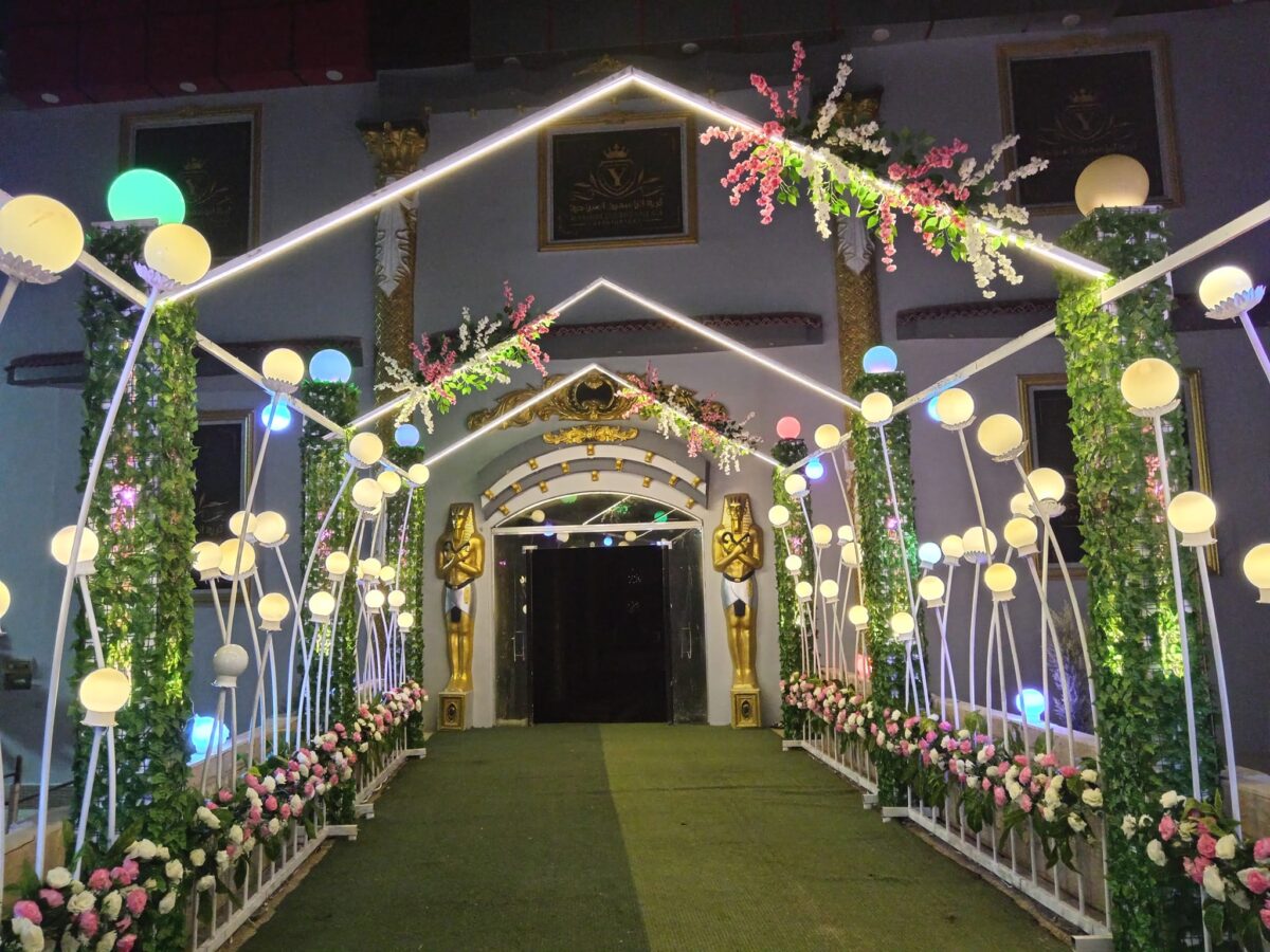 الدخلة في قرية الياسمين ليها حضور كبير لأن الممر واسع والإضاءة بتتكيف مع الموسيقى ووقت دخول العريس والعروسة. الزفة بتبان واضحة لكل الضيوف لأن المكان مفتوح ومترتب بطريقة تخلي الرؤية سهلة من كل جهة. مساحة الرقص كمان كبيرة ومريحة، سواء للعرسان أو للضيوف اللي عايزين يشاركوا في الفقرات. الجو كله بيبقى مليان حركة وفرح وفي نفس الوقت مش مزعج.
