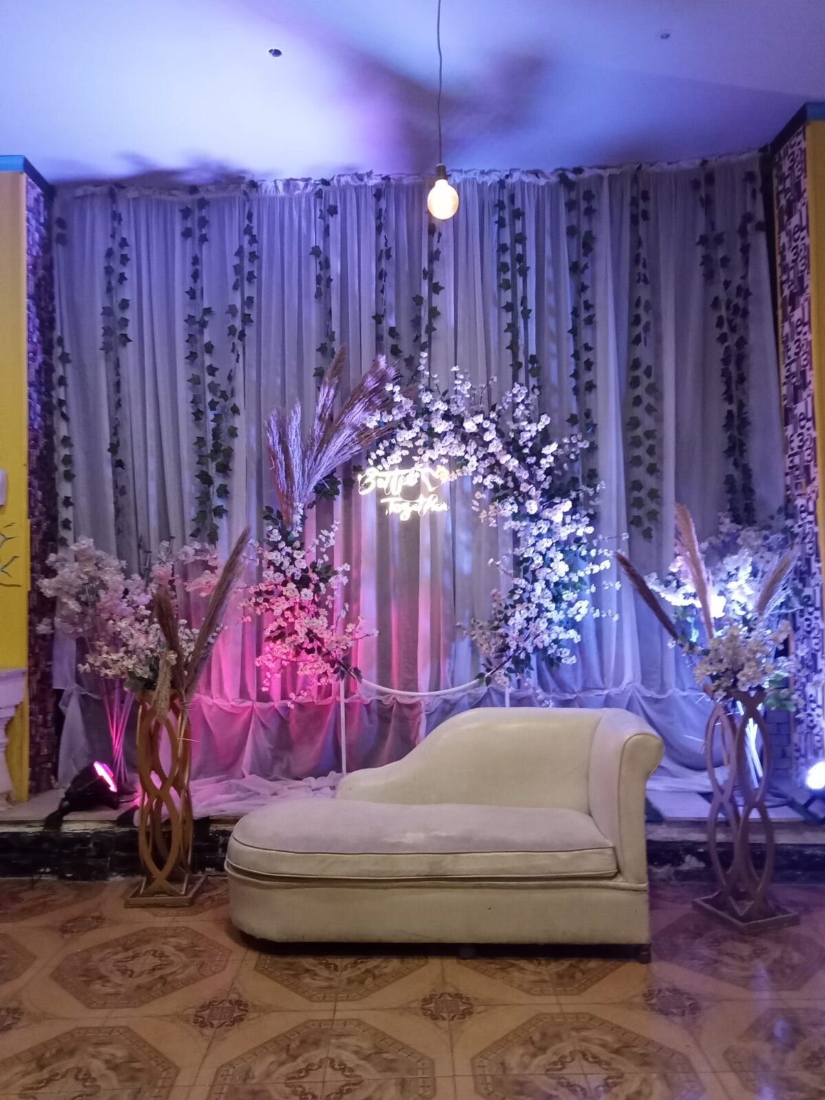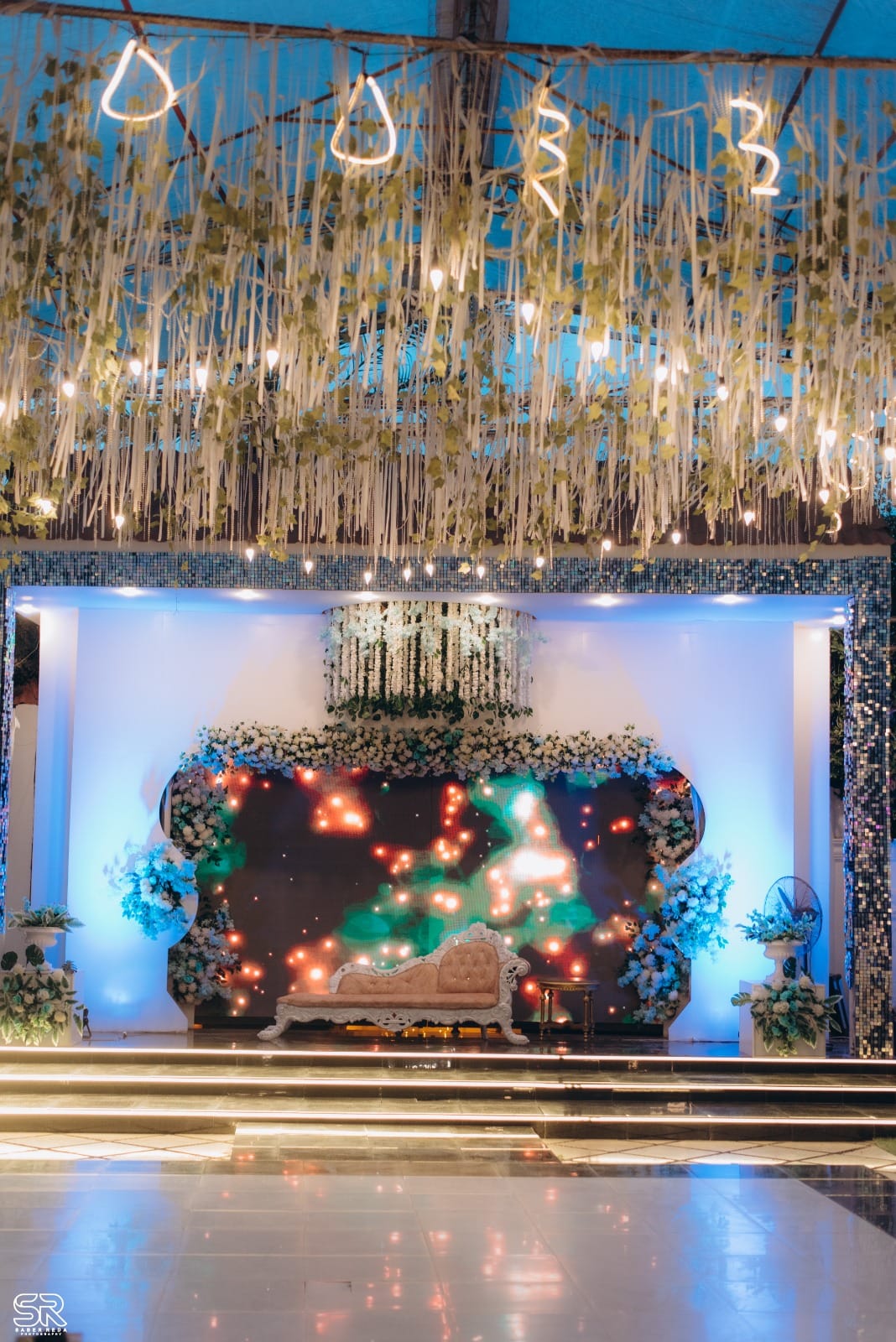 الكوشة في قرية ميلفيتا بتتعمل دايمًا بتصميم بسيط ومودرن يليق بطابع المكان. أوقات بتكون من ورود بسيطة، وأوقات بإضاءات دافيه أو ألوان هادية، وكل ده بيطلع جميل جدًا على الخلفية الطبيعية اللي المكان بيوفرها. الديكور بيتظبط حسب اختيار العروسة، بس الفكرة دايمًا بتكون إن الشكل النهائي يبقى ناعم ومتناسق ورايق.