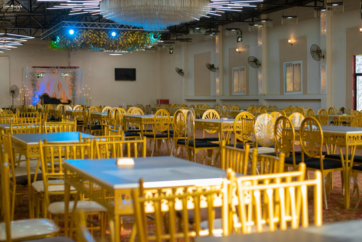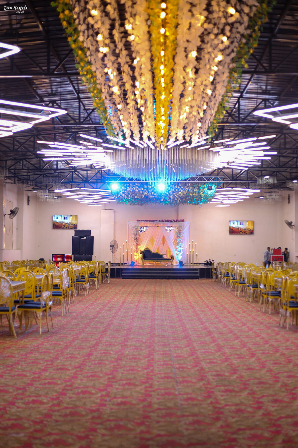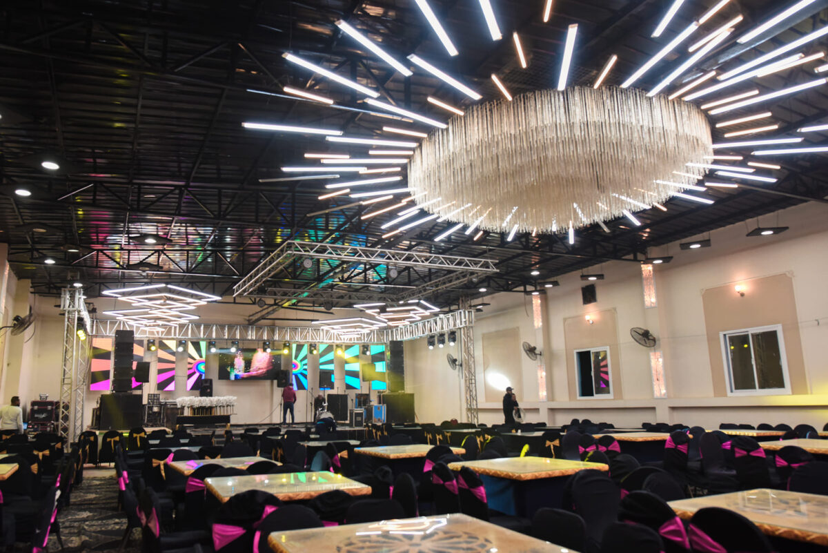 القاعة بتتميز بتصميم عصري بسيط، ألوانها مريحة للعين وإضاءتها متوزعة بعناية، وده بيخليها تناسب كل أنواع الحفلات.