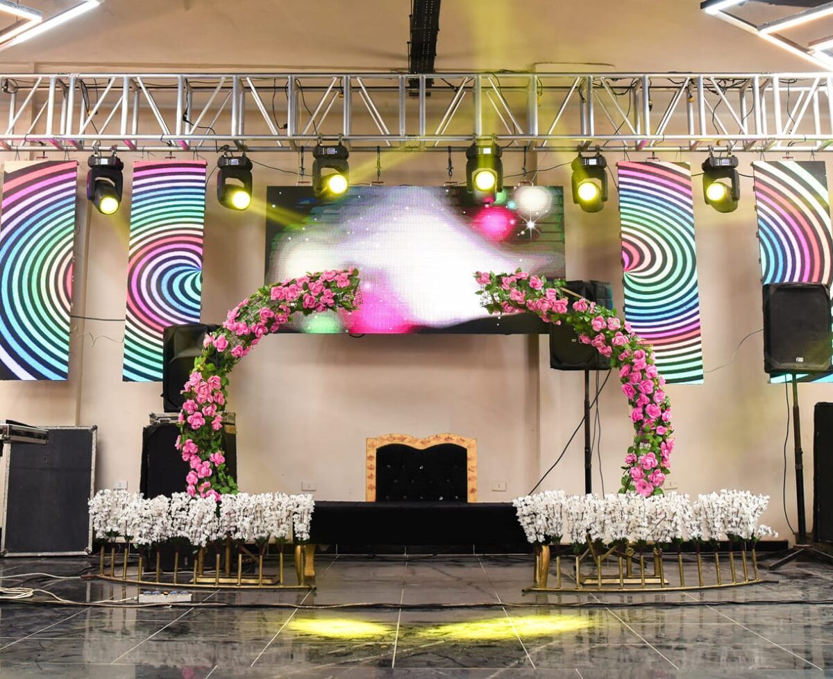 المكان مجهز بأحدث أنظمة الصوت والإضاءة، علشان كل لحظة في المناسبة تكون واضحة ومبهجة.