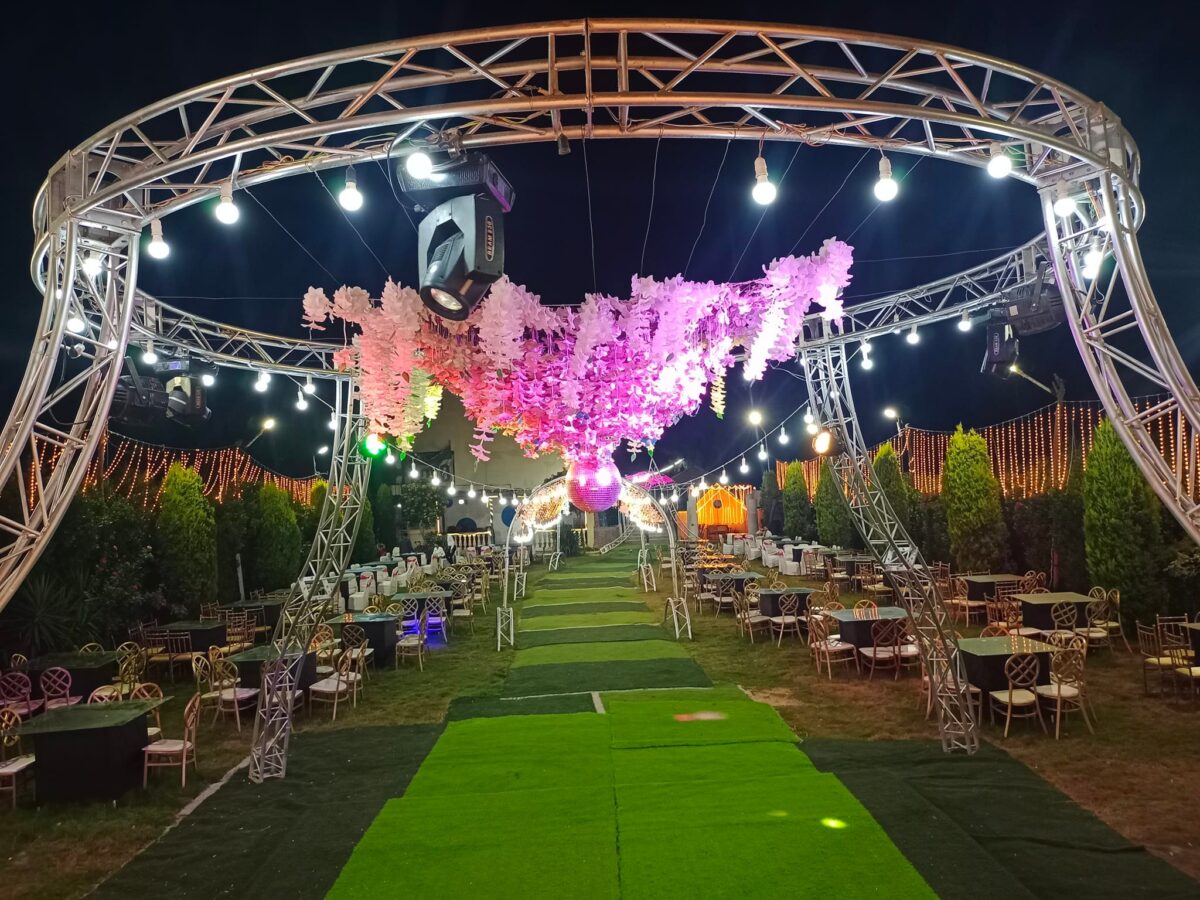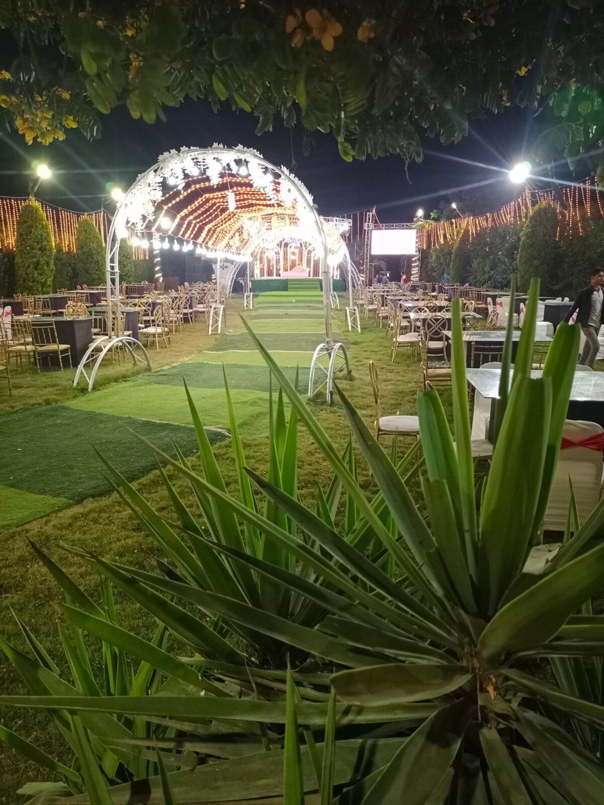 أول حاجة بتميز المكان إن الديكور فيه بسيط وفي نفس الوقت شيك. المساحات الواسعة بتخلي أي تفاصيل صغيرة تظهر وتدي شكل أحلى للفرح. سواء العروسة عايزة ثيم كلاسيك بسيط، أو ألوان ترابية، أو ديكور كله ورود، المكان بيساعد على تنفيذ أي فكرة لأنها قاعة مفتوحة ومنسقة بطريقة تخدم كل الاختيارات. كمان شكل الكوشة والإضاءة الهادية اللي حوالين المساحة بتدي شكل رومانسي جدًا على الطبيعة خصوصًا لو الفرح وقت الغروب.