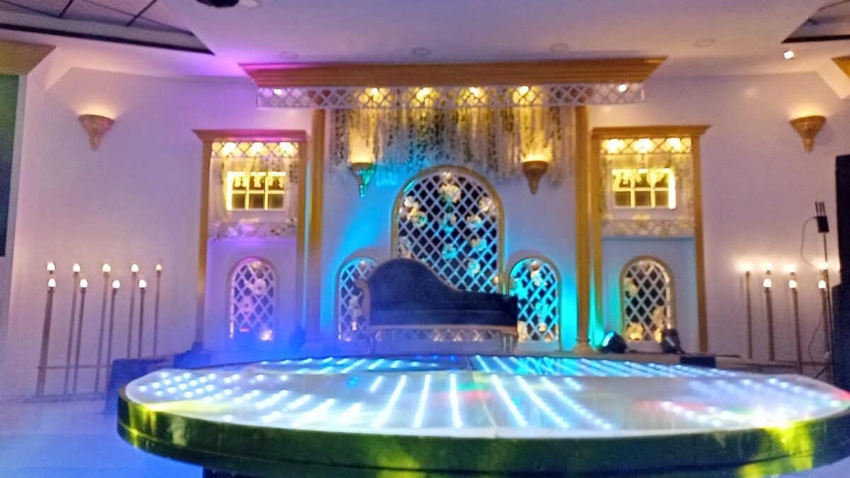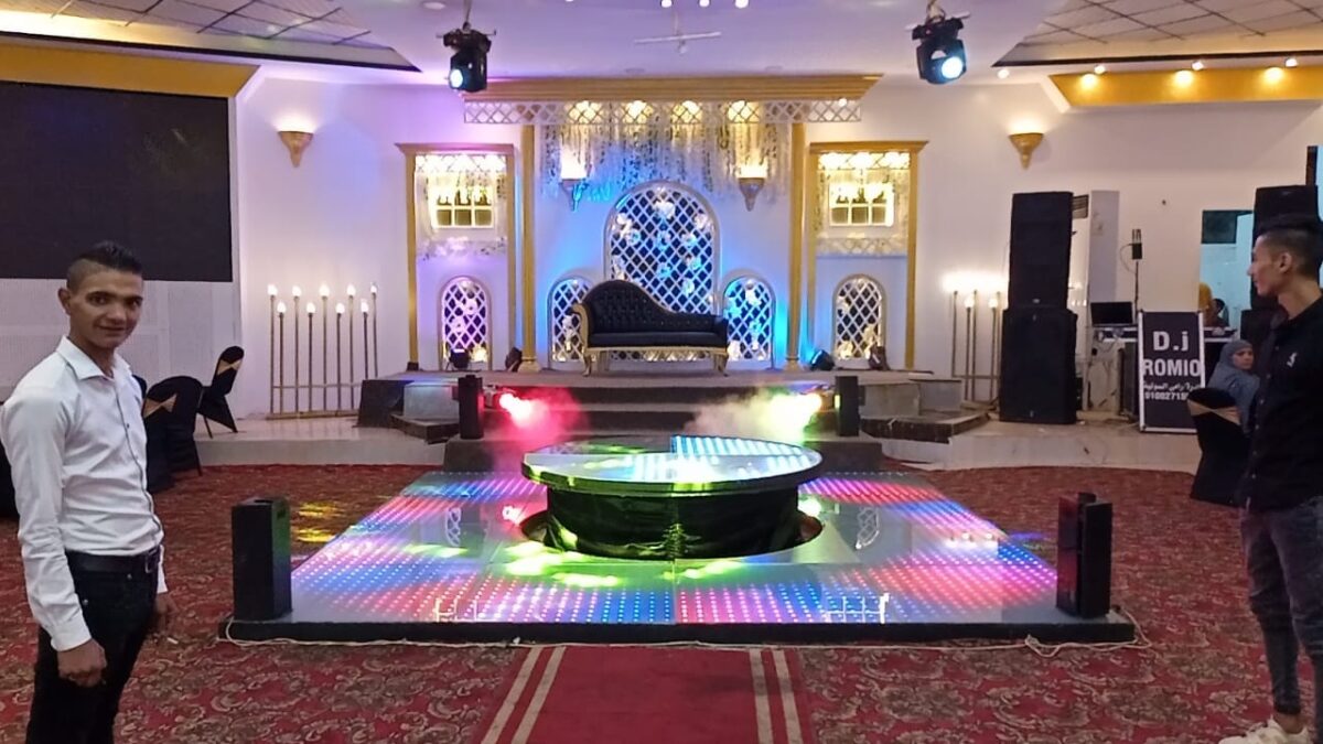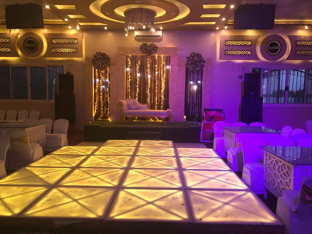 أما بالنسبة لمساحة الرقص والزفة، القاعة عاملة حسابها إن اليوم ده محتاج مساحة مفتوحة. الدخلة بتبقى قوية وواضحة لأن الممر واسع والإضاءة بتتغير مع المزيكا بشكل يدي روح للحظة. الضيوف كمان يقدروا يشوفوا كل التفاصيل من غير ما يكون في أي حاجة حجباهم. مساحة الرقص تسمح بفقرات كتير سواء دي جي، فقرة موسيقية، أو أي فكرة خاصة يحب العريس والعروسة يعملوها.