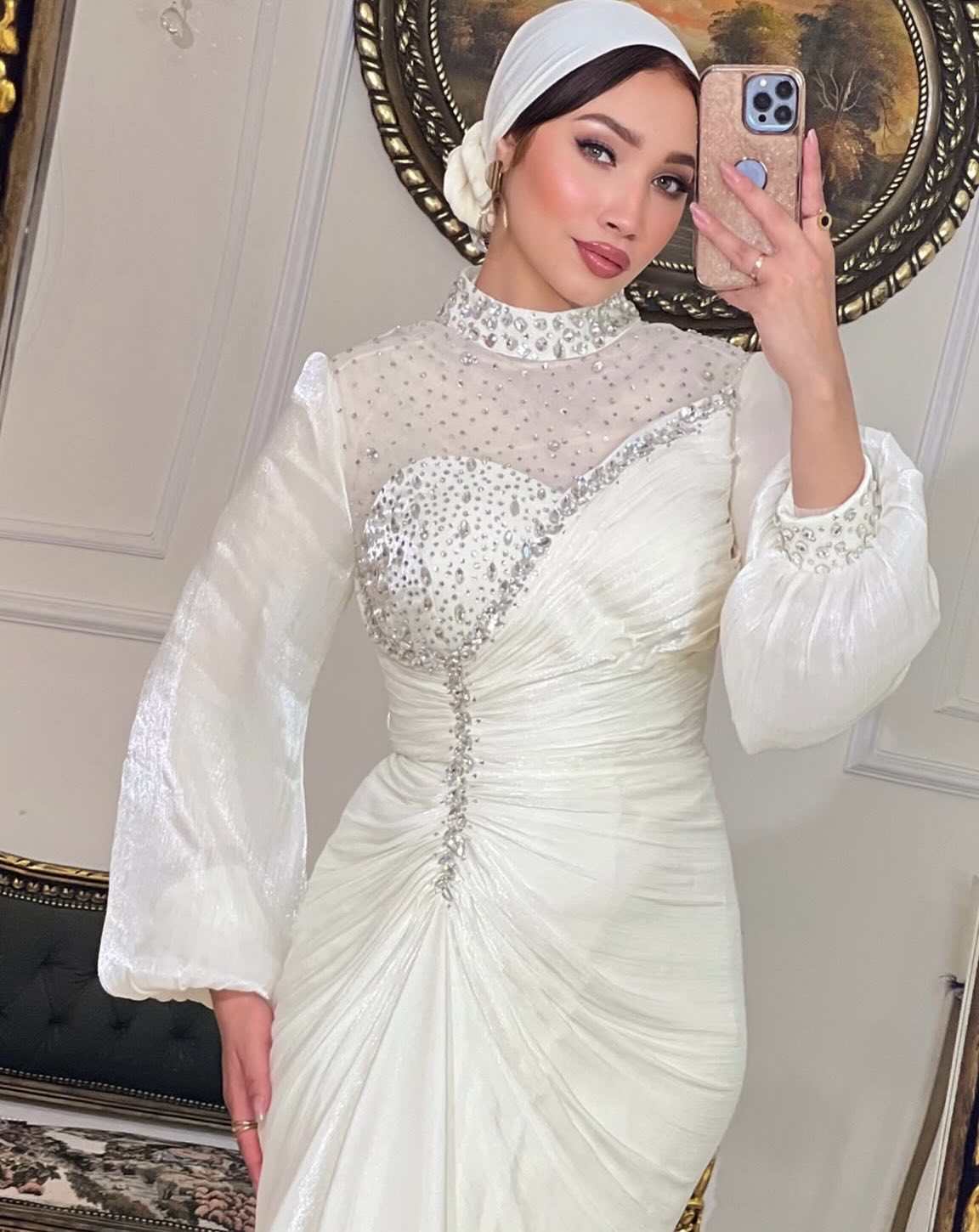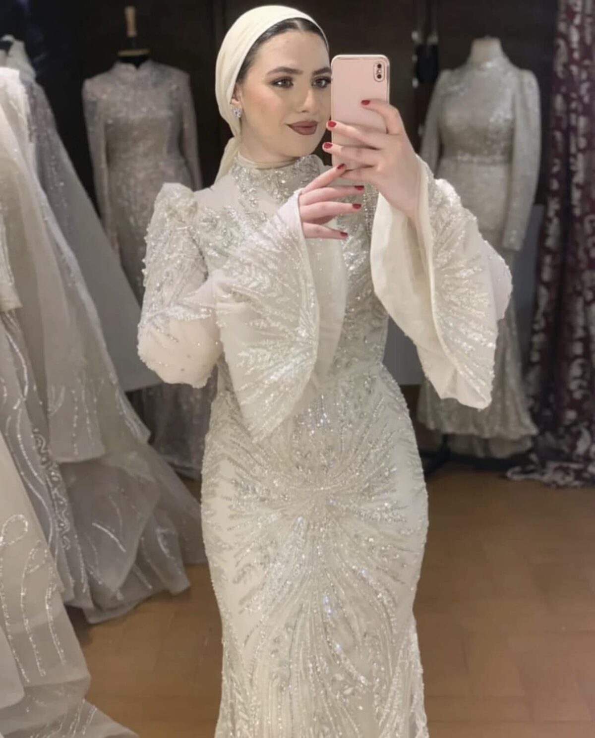 التجربة نفسها في الإتيليه بتكون هادية ومريحة. العروسة بتجرب أكتر من موديل وتشوف شكلها فيه قبل ما تاخد القرار. وده شيء مهم لأن ساعات الفستان اللي العروسة بتفكر فيه ممكن ما يطلعش مناسب زي ما هي متخيّلة، وساعات العكس، تلاقي موديل ما كانتش متوقعة إنه يليق عليها. في اتيليه ليله العمر بيبقوا فاهمين النقطة دي، وعلشان كده بيسيبوا مساحة للتجربة من غير استعجال.