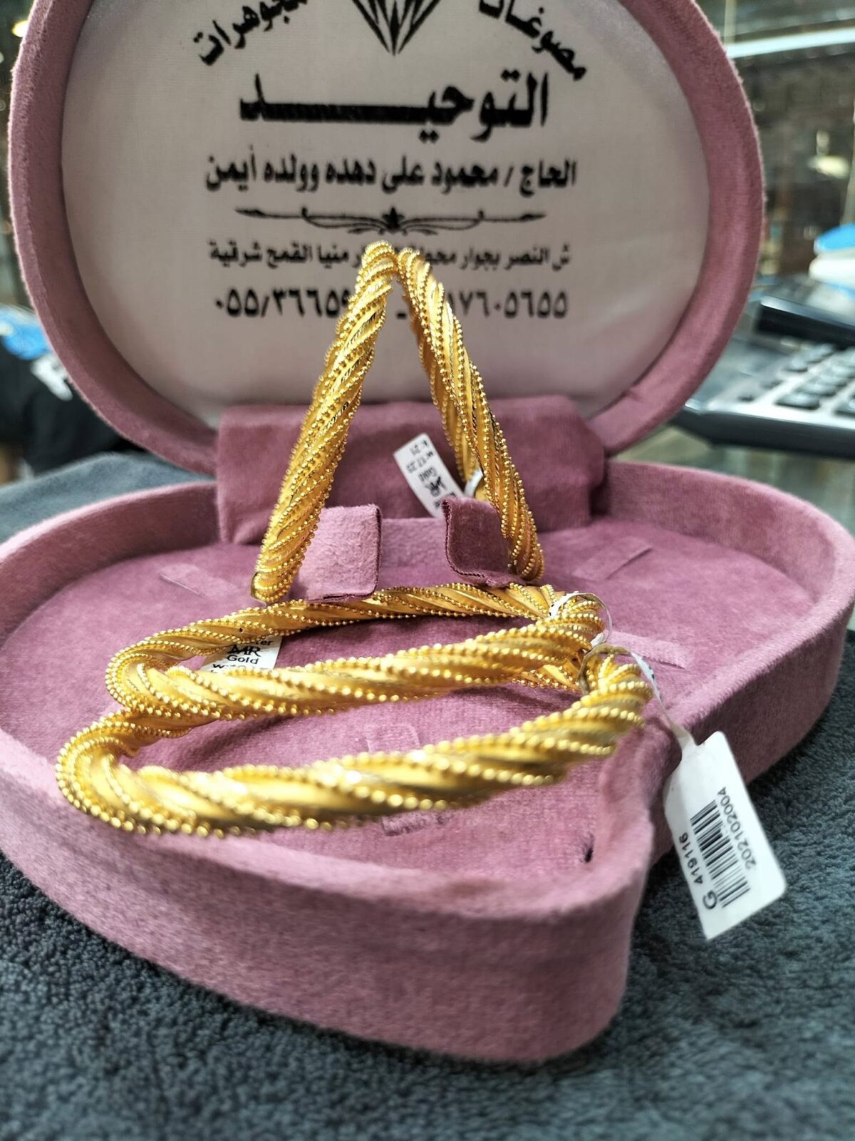 ولو العروسة نفسها في موديل معين مش موجود بين الموديلات المعروضة، مصوغات التوحيد بيوفّر خدمة تصميم حسب الطلب. تقدري تجيبي صورة أو فكرة معينة، ويتنفّذ ليكي موديل خاص بالشكل اللي تتخيليه وبالوزن اللي يناسب ميزانيتك. القطعة اللي بتتعمل مخصوص دايمًا بتكون مميزة لأنها معمولة بذوق شخصي.