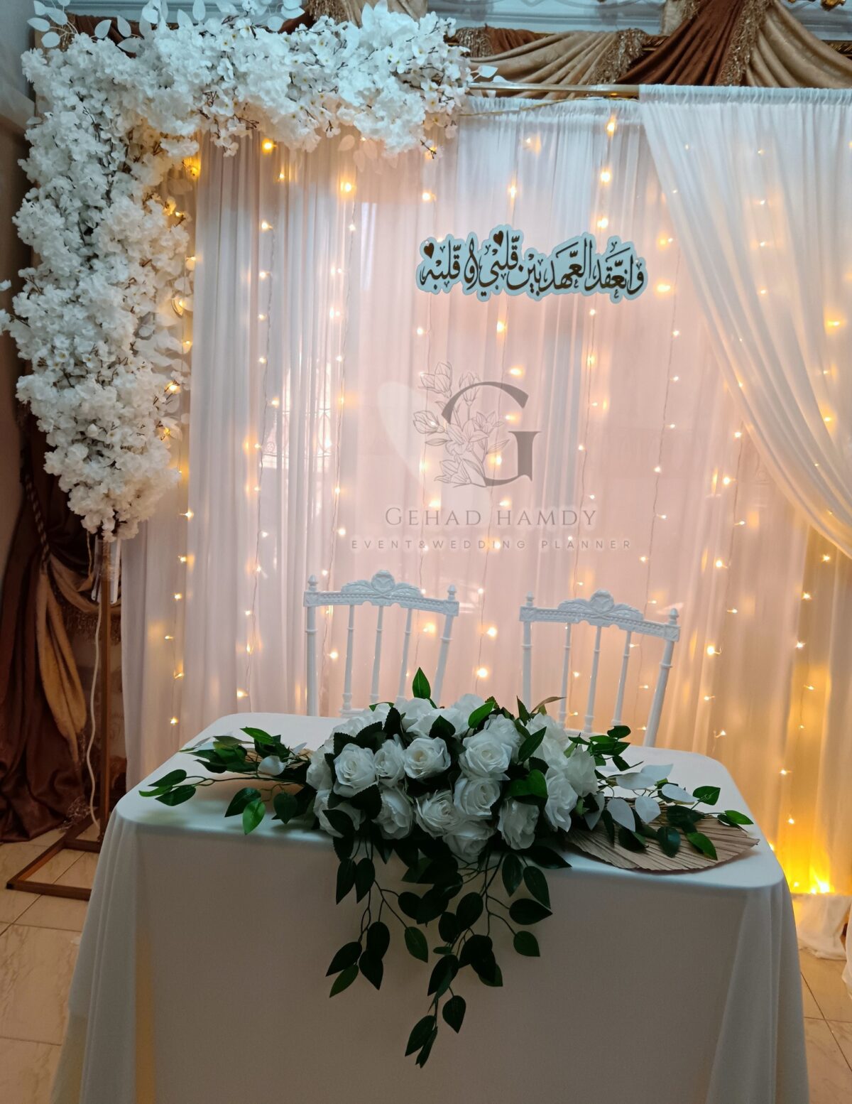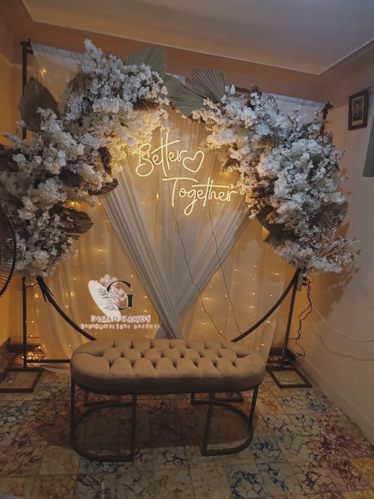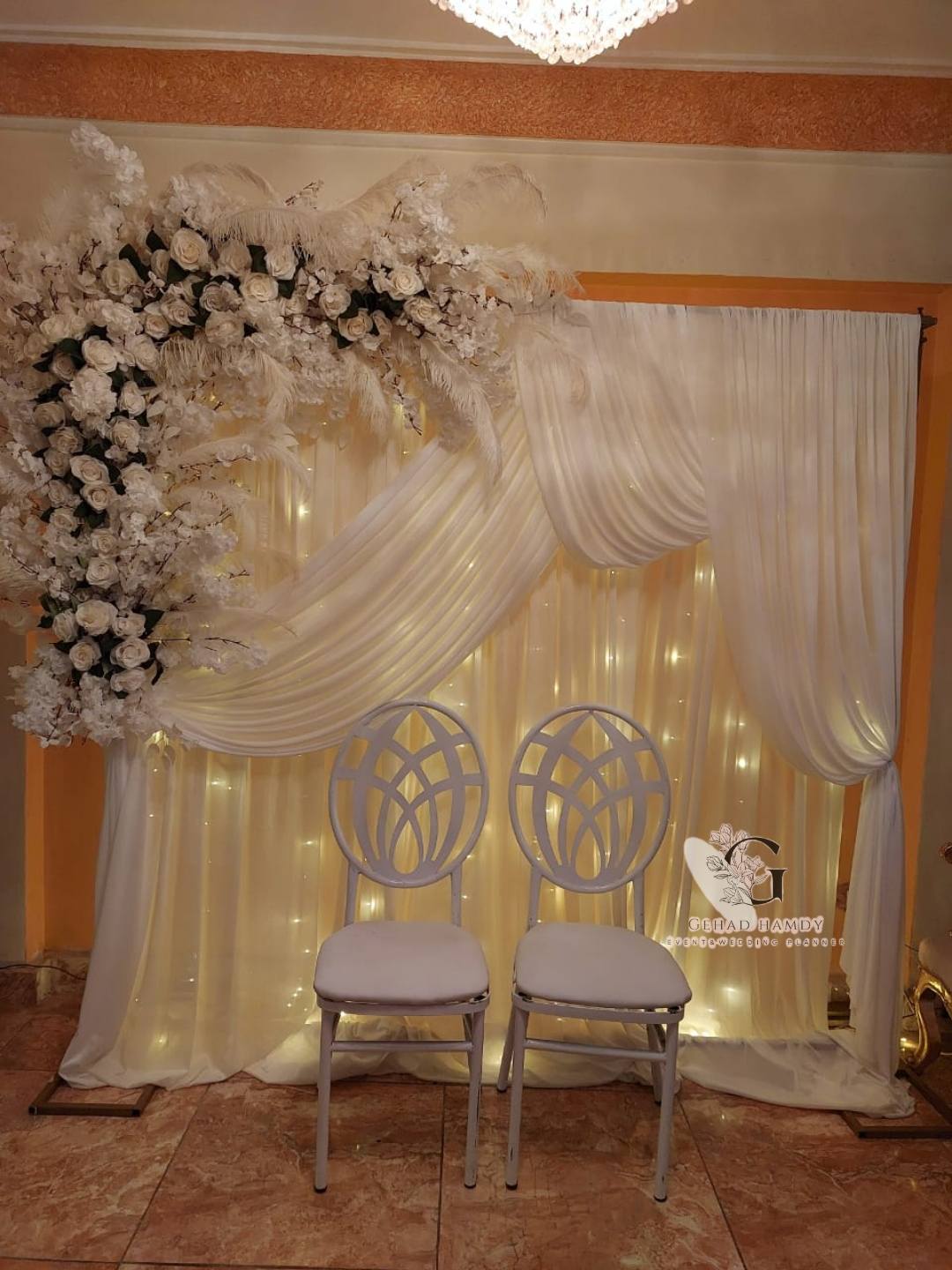 من ناحية الميزانية، Gehad Hamdy عندها مرونة وبتعرف تقدم بدائل عملية تناسب إمكانيات العروسين. ممكن تقترح ورود موسمية بدل الأنواع الغالية، أو تعتمد على توزيع إضاءة يغني عن ديكورات مكلفة. الهدف عندها إن الشكل النهائي يبان شيك وأنيق وفي نفس الوقت يكون في حدود الميزانية.