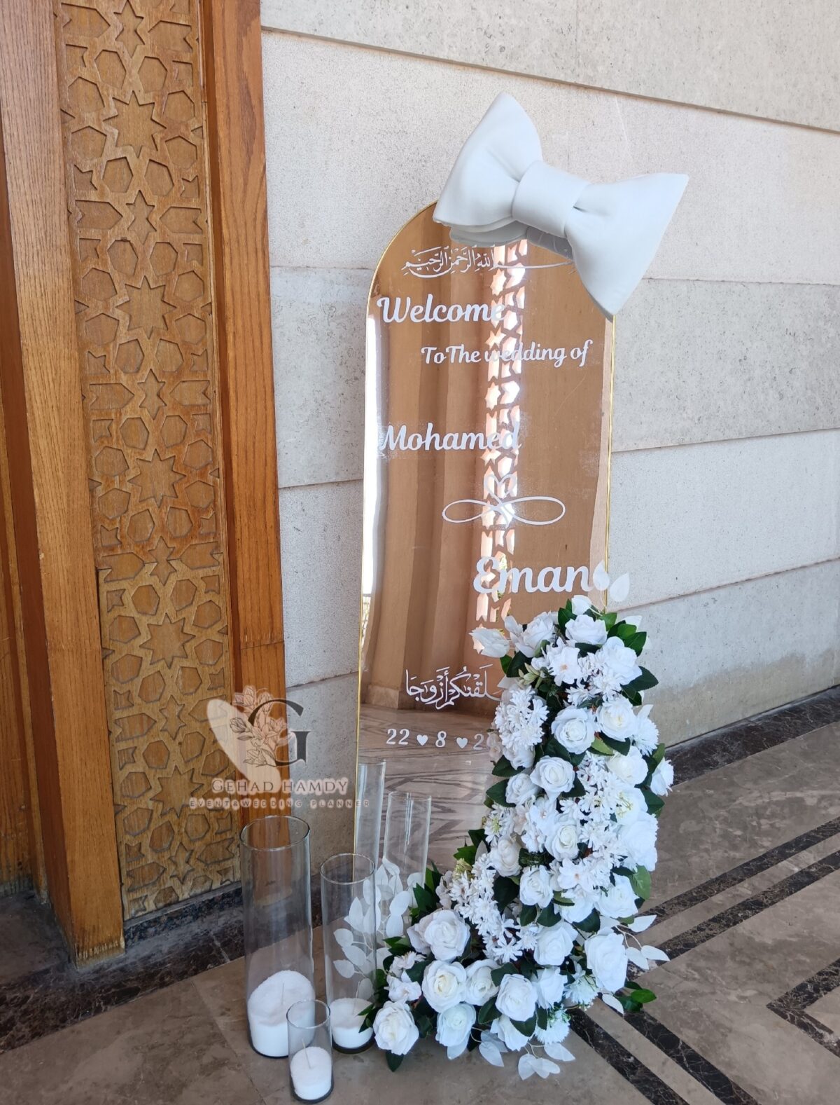 التفاصيل الصغيرة بتبان بوضوح في شغل Gehad Hamdy. زي تصميم بطاقات أسماء الضيوف بشكل أنيق وسهل القراءة، ترتيب المناديل على الطاولات بذوق، أو إضافة لمسات رومانسية زي الورود والشموع اللي بتدي جو مختلف. كمان بتنسق مع المصور قبل اليوم على لحظات أساسية زي تبادل الدبل، الرقصة الأولى، ولمسات العيلة. التفاصيل دي بتخلي الألبوم يوثق القصة كاملة من غير حاجة ناقصة.