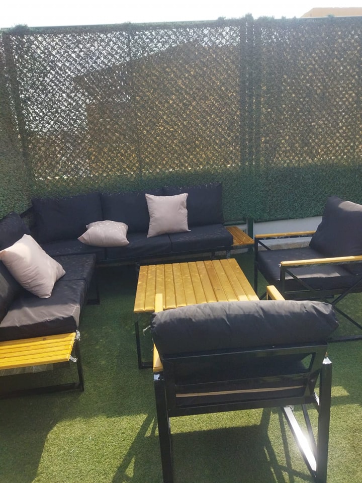 • مكونة من كنبة + كراسي + ترابيزة