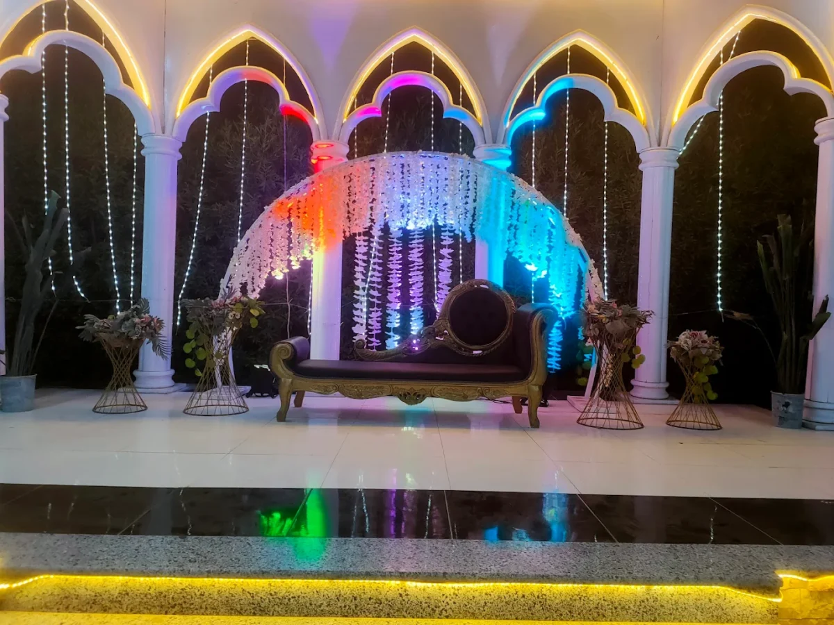 التصميم الداخلي أنيق وعصري، مع ألوان متناسقة وإضاءة مدروسة بتخلق أجواء احتفالية مثالية.