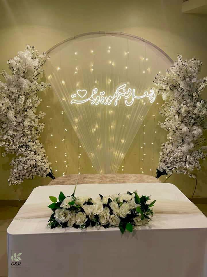 في موضوع الديكور، G.R Event Planner عندهم أسلوب بسيط وراقي. مش بيكدسوا عناصر كتير في المكان، لكن بيركزوا على التوازن بين الإضاءة، الورود، وألوان الطاولات. لو الفرح في قاعة فخمة، بيستغلوا جمال القاعة ويضيفوا لمسات أنيقة تبرزها. ولو في مكان مفتوح، بيخلوا الطبيعة جزء من التصميم ويكملوا بمؤثرات خفيفة تناسب الجو.
