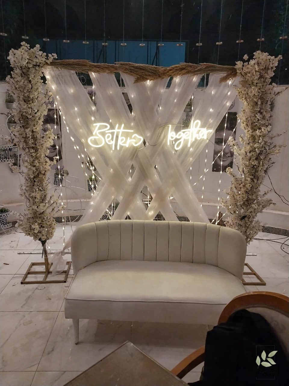 التفاصيل الصغيرة بتبان جدًا في شغل G.R Event Planner. زي تصميم بطاقات أسماء الضيوف بشكل شيك وسهل القراءة، أو ركن التصوير اللي بيتعمل على نفس الثيم عشان الصور تطلع متناسقة. حتى شكل المناديل على الطاولات بيتظبط بطريقة تدي شكل أنيق. الإضاءة عندهم عنصر أساسي، بتتوزع صح عشان تدي عمق للمكان وتبرز جمال القاعة.