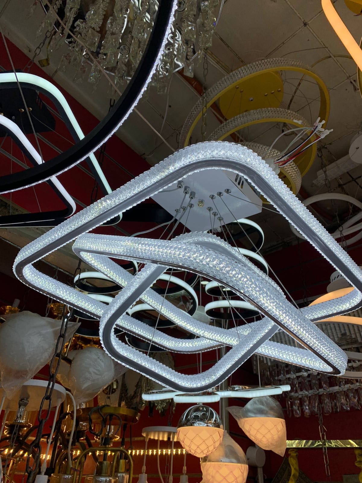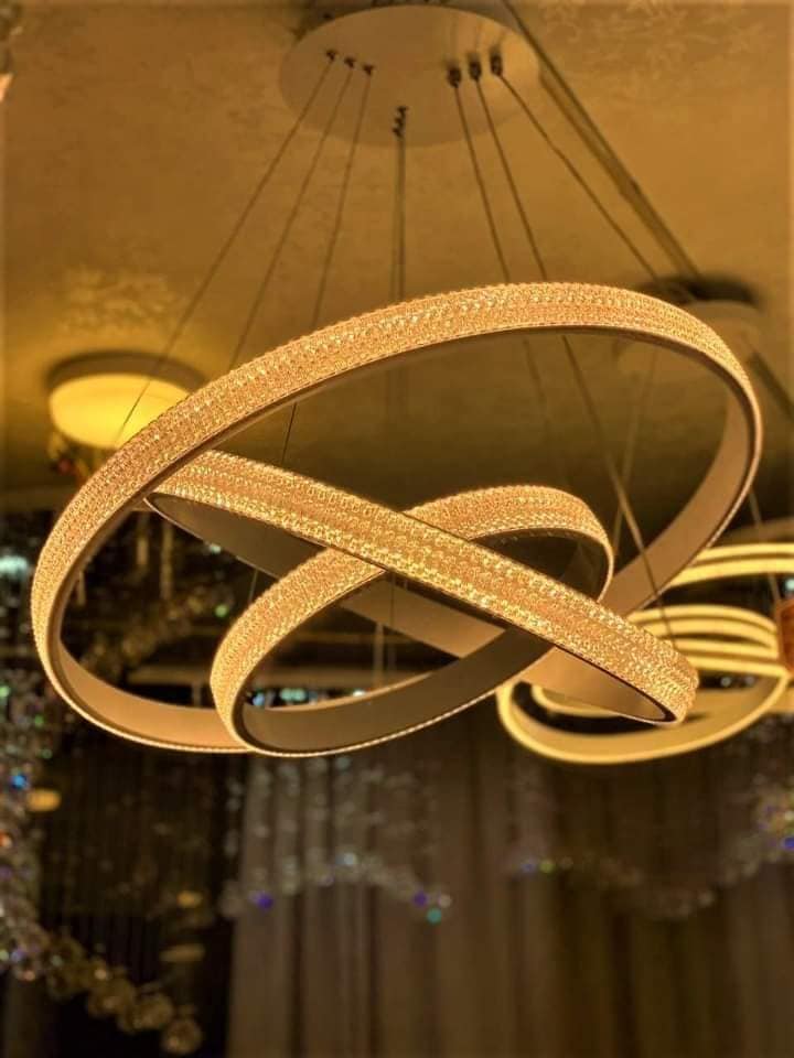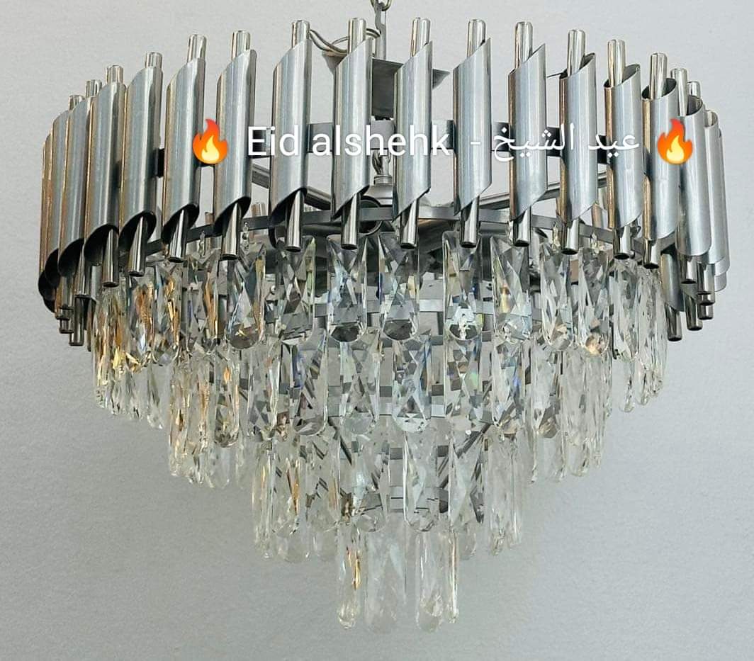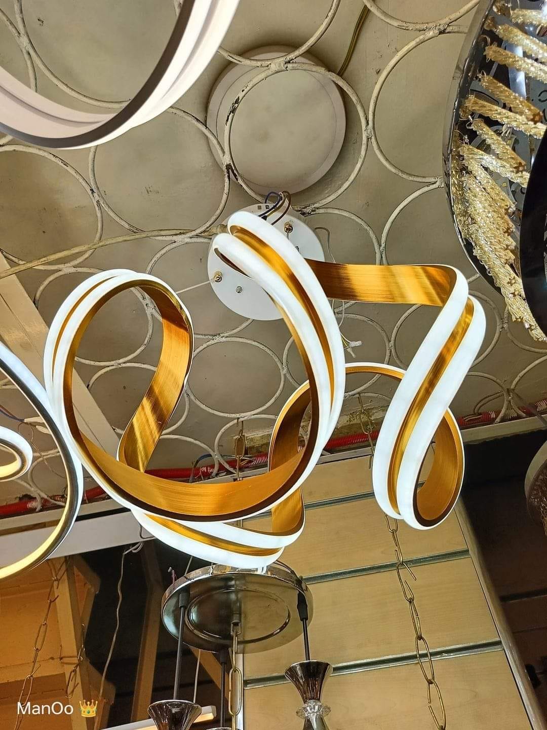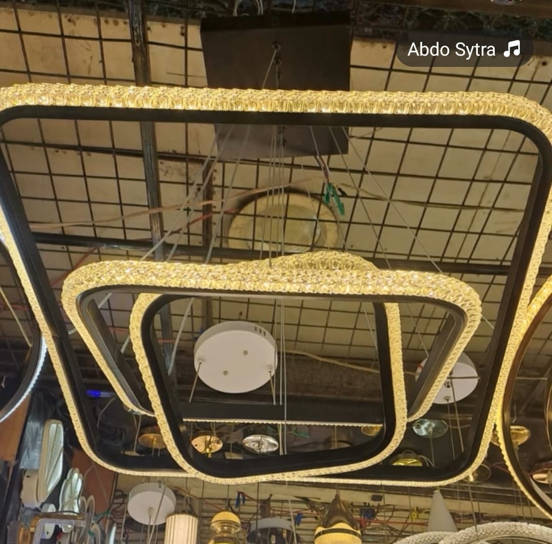في ابومالك للنجف هتلاقي ثريات مودرن هندسية بتصاميم متداخلة من حلقات المنيوم او النحاس المطفي معاها لمبات LED ذكية تقدر تتحكم في درجة حرارة اللون من دافئ لابيض بارد عشان تناسب جو الافراح او جو المساحات الهادية. ولو السقف عالي هتقدر تختار ثريات معلقة بخيوط ستانلس ستيل قابلة للتعديل حسب الارتفاع اللي انت عاوزه.