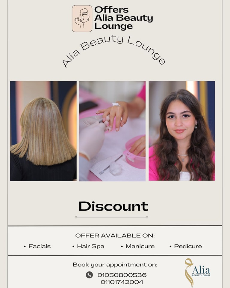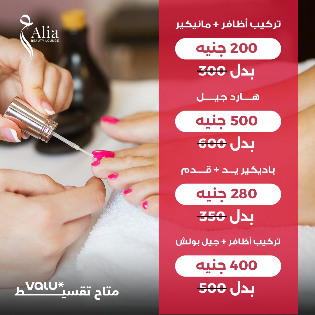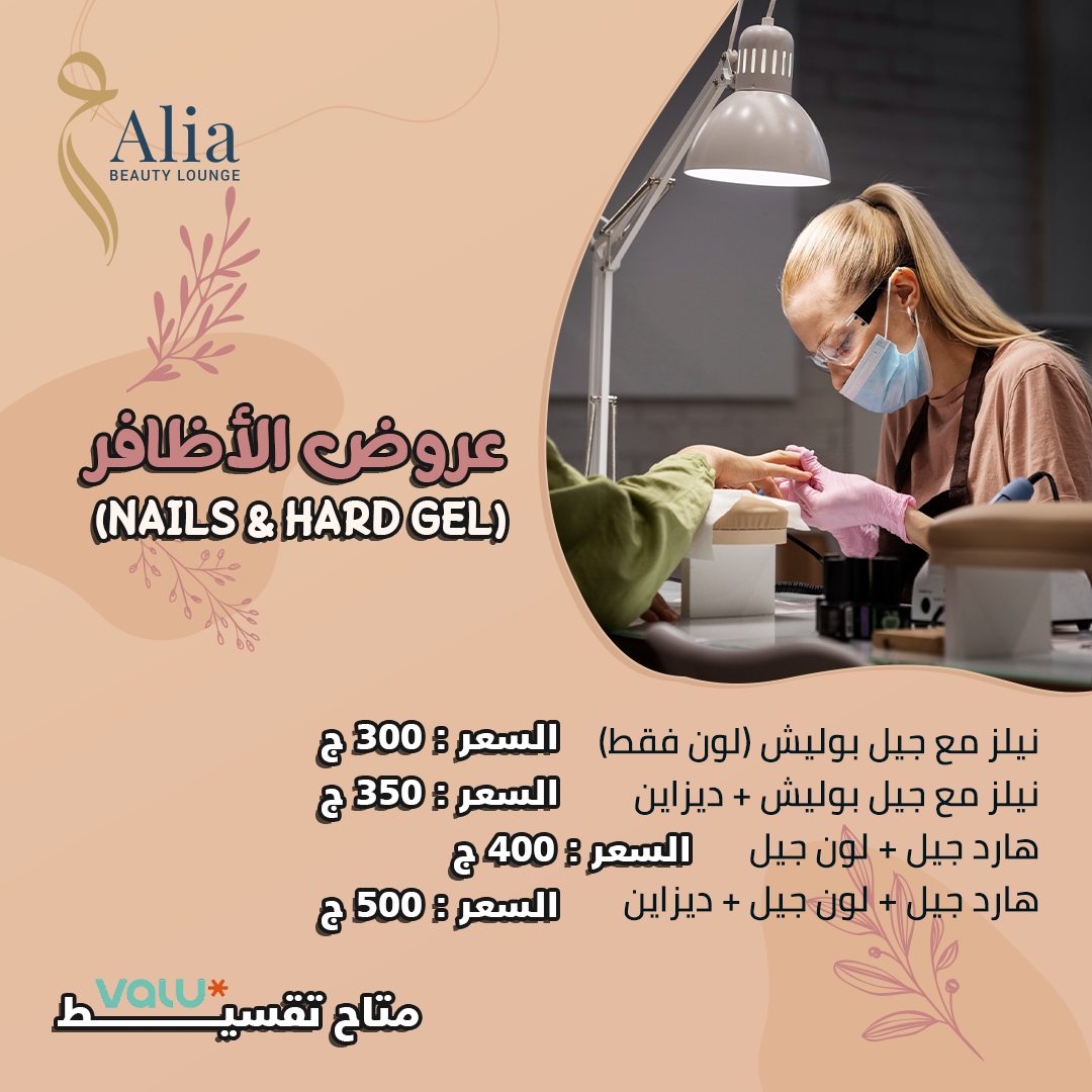 Alia Beauty Lounge من الأماكن اللي بتقدم عناية متكاملة في النيلز والباديكير وسكين كير البشرة والرموش والشعر، وده بيخليها اختيار مناسب لأي بنت أو عروسة بتجهز لفرحها وعايزة تهتم بكل تفاصيلها في مكان واحد وبأسلوب هادي ومن غير مبالغة. التركيز دايمًا بيكون على العناية الصح اللي تدي نتيجة طبيعية وتبان بوضوح في يوم الفرح.