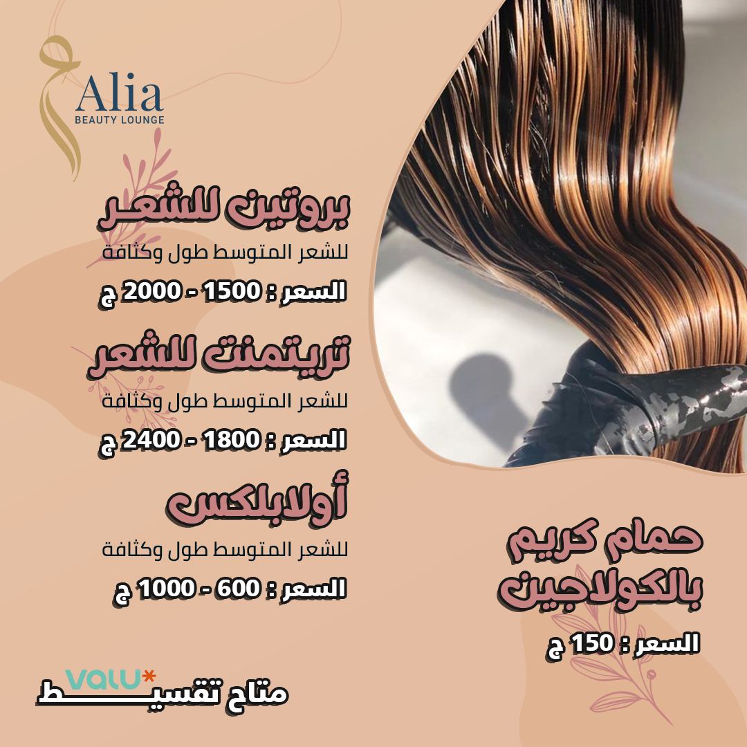 العناية بالشعر جزء أساسي من التجهيز، لأن الشعر الصحي بيفرق جدًا في شكل العروسة يوم الفرح. Alia Beauty Lounge بيقدم جلسات عناية بالشعر تساعد على ترطيبه وتقويته حسب نوعه وحالته، وده بيساعد إنه يبقى أسهل في التصفيف والتسريحات تطلع أنعم وتثبت لفترة أطول. الاهتمام بالشعر بدري بيقلل أي مشاكل ممكن تظهر في آخر لحظة.