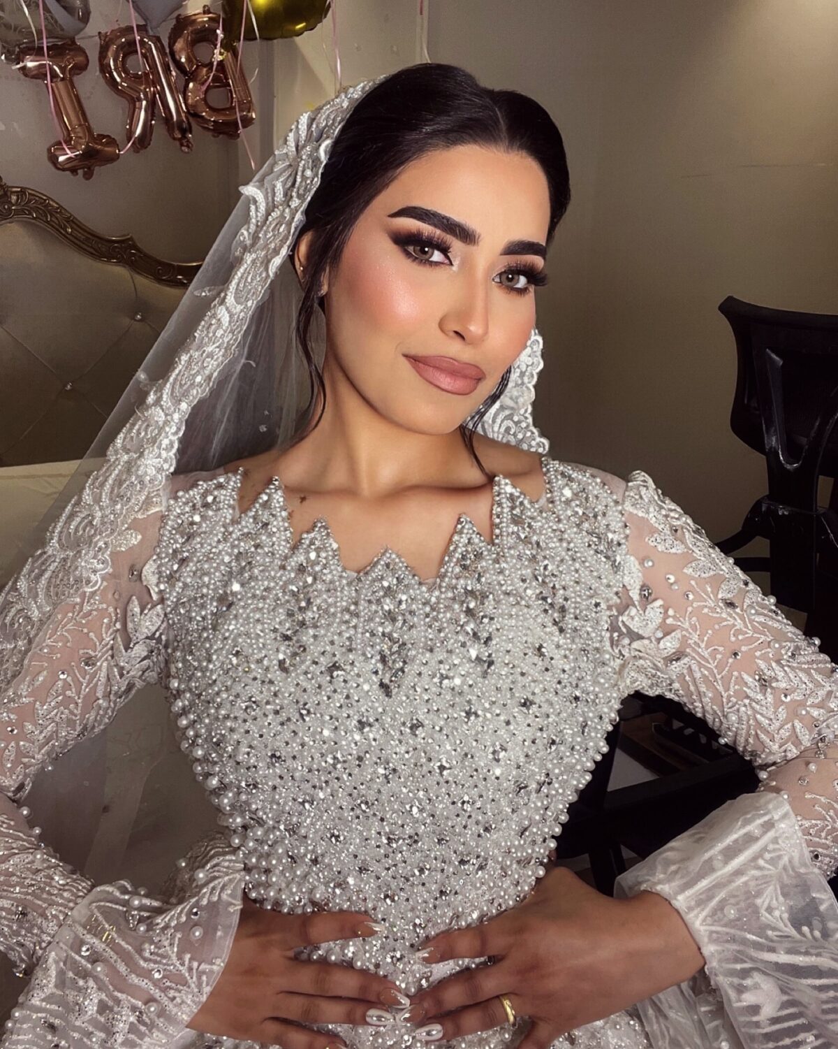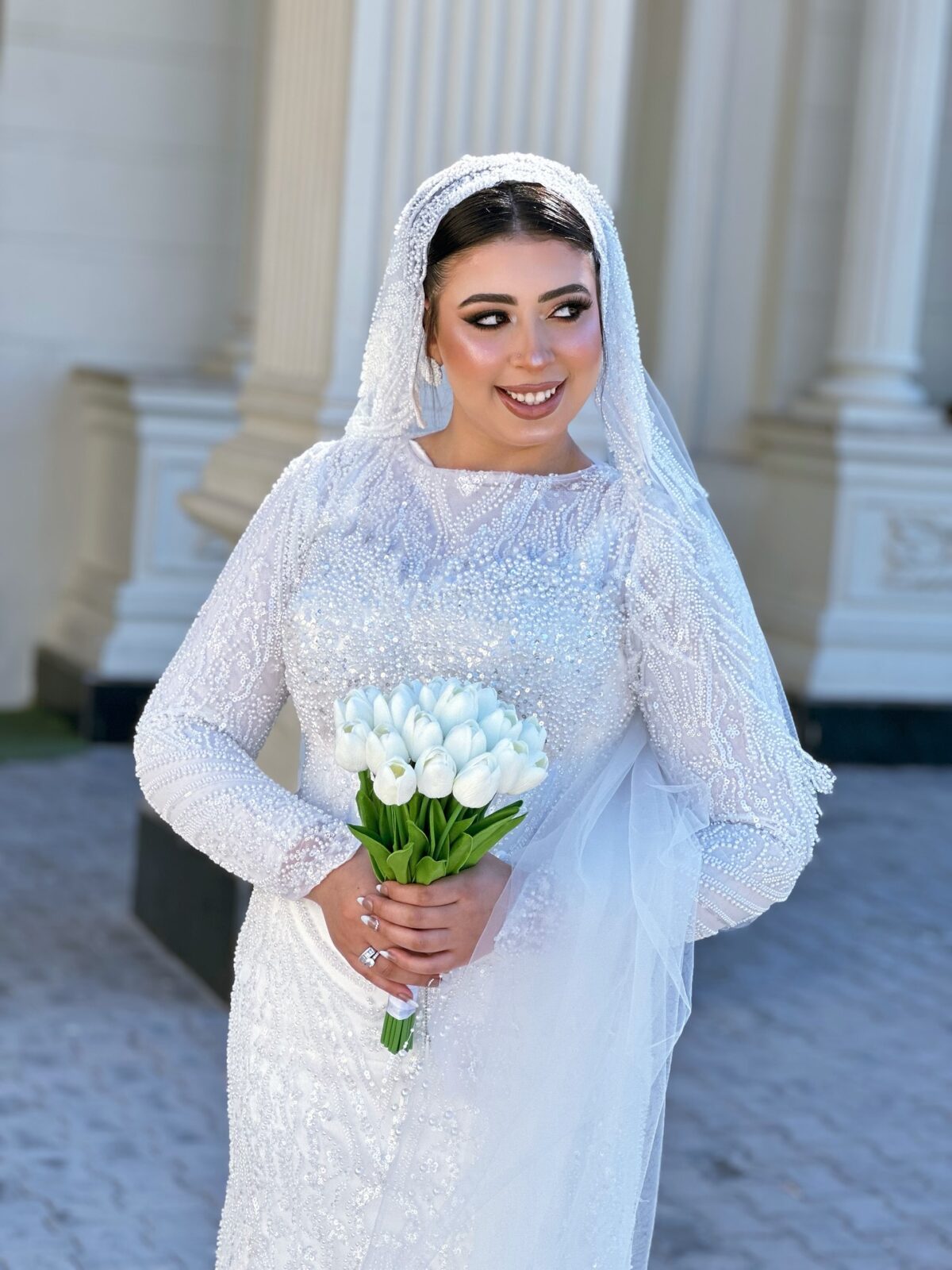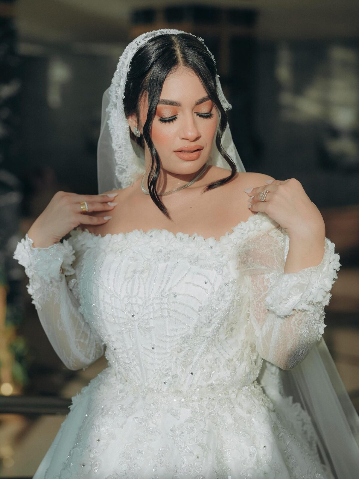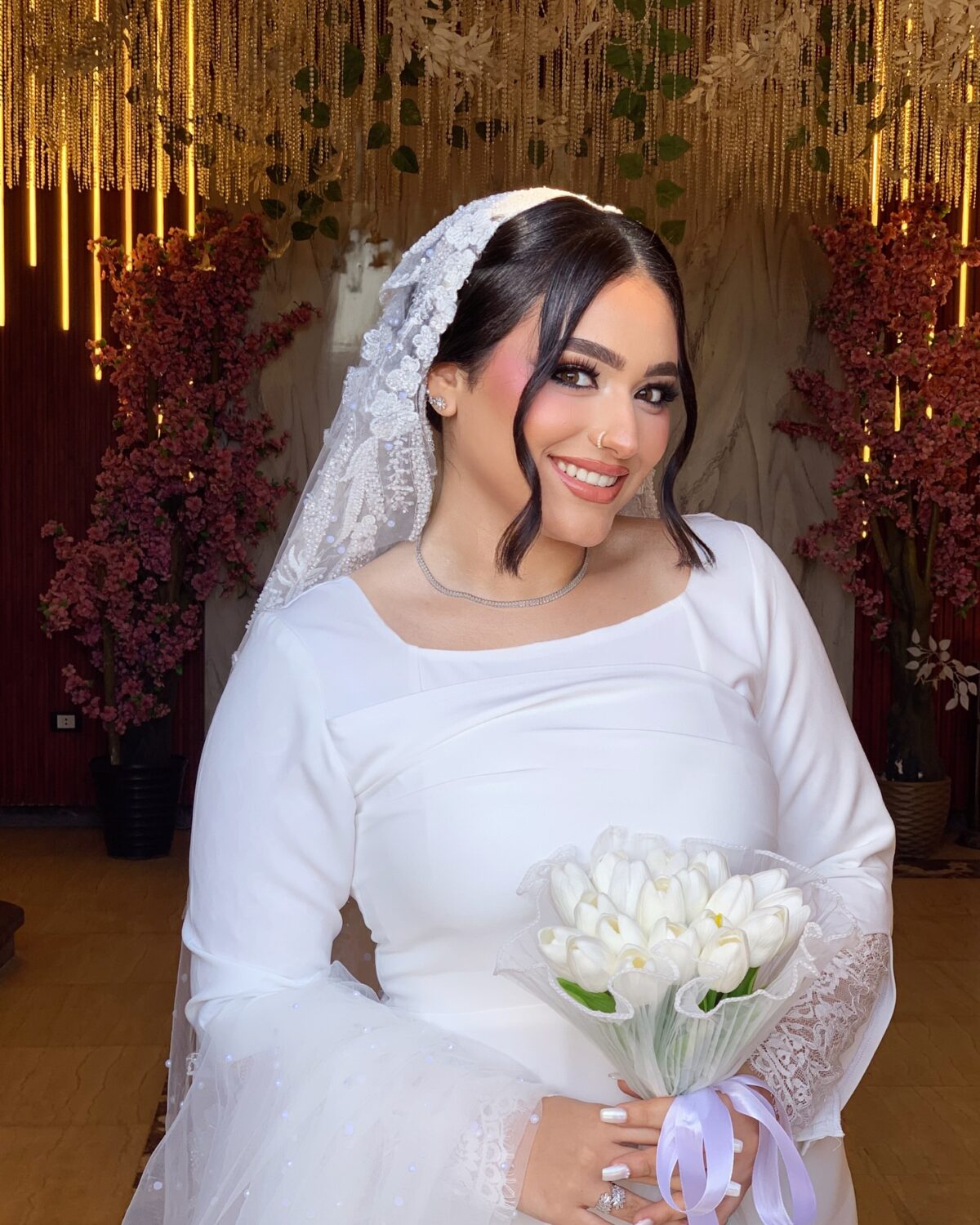 الاهتمام مش بس بالشكل الخارجي، لكن كمان بالراحة. علشان كده دايمًا الطرحة بتكون ثابتة من غير ما تضايق العروسة أو تسبب أي تعب.