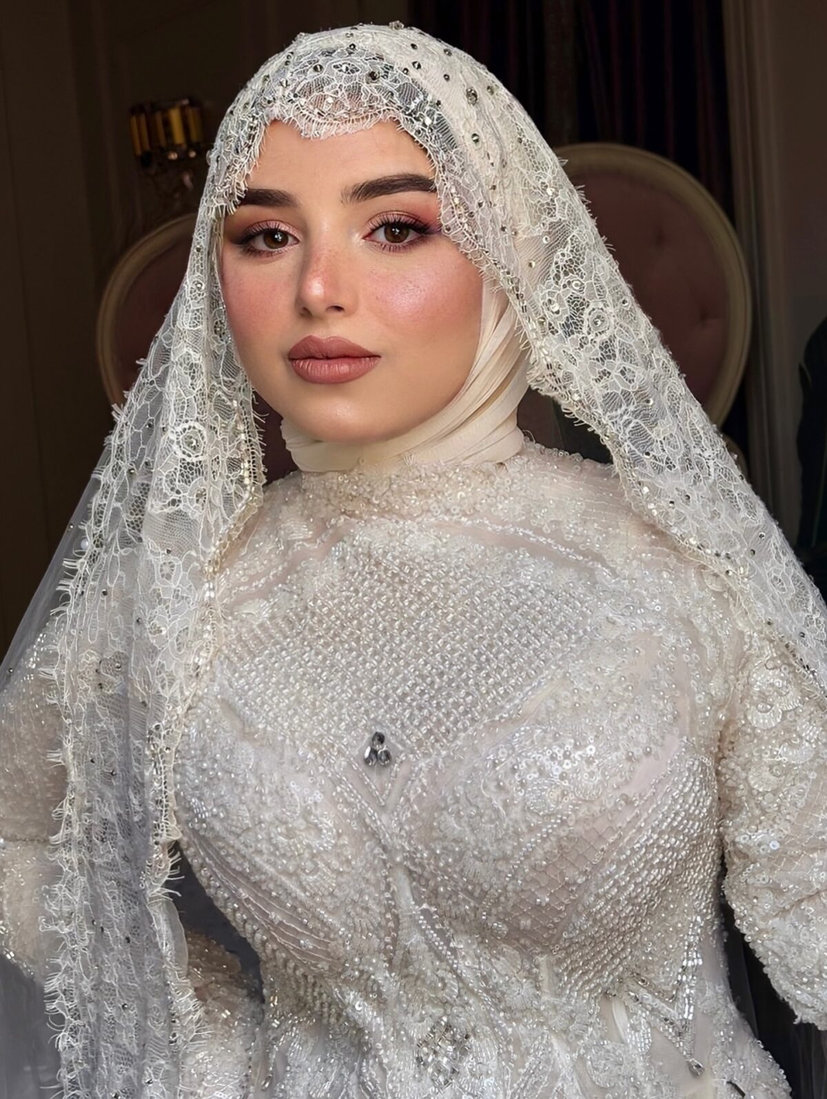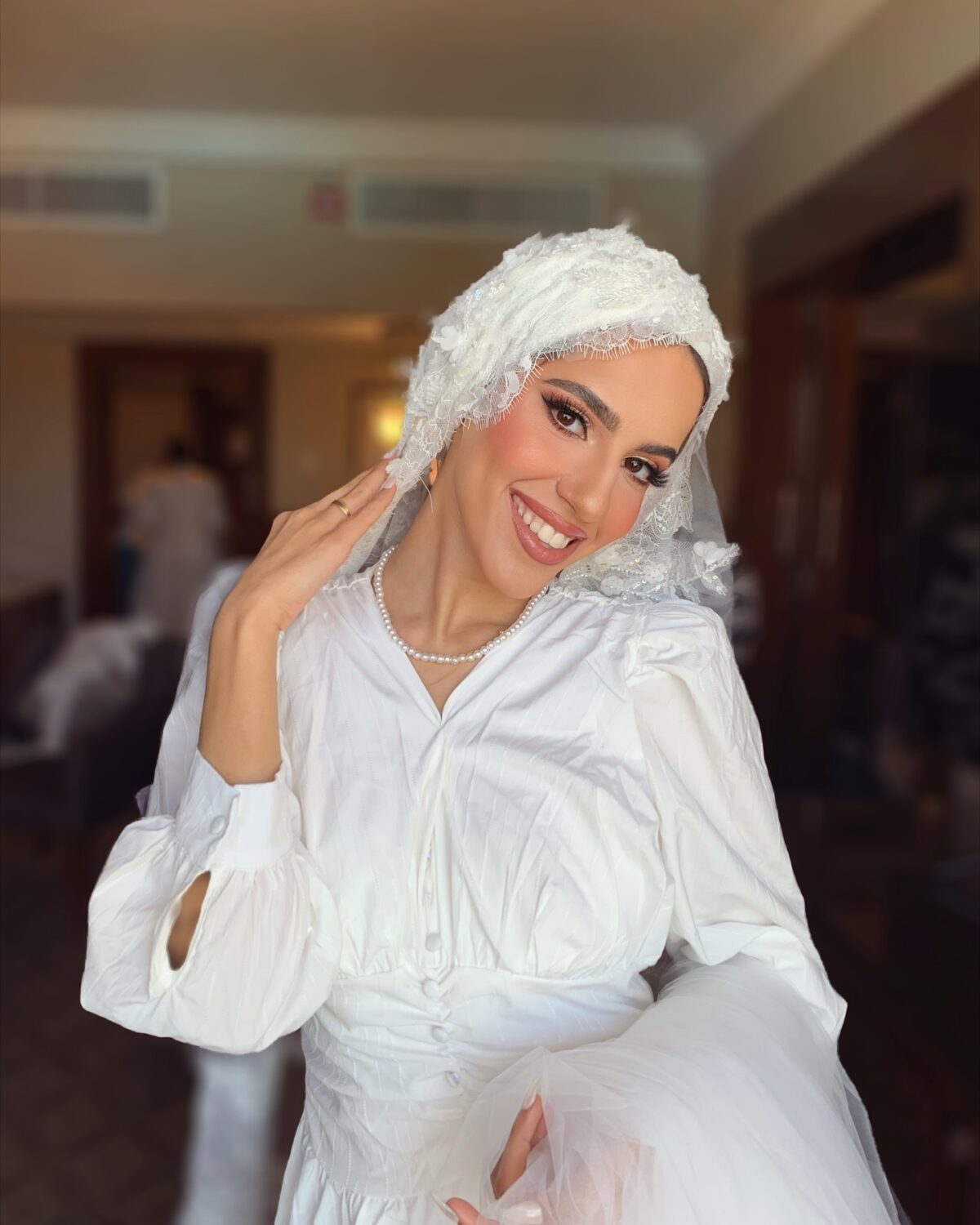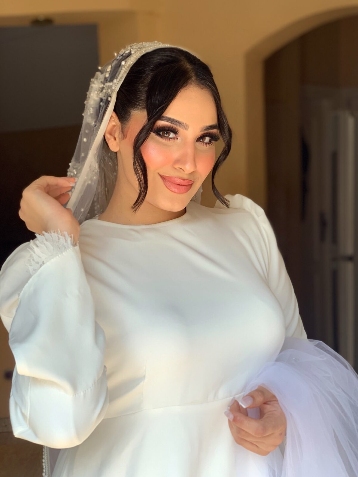 كمان بتساعد كل عروسة في اختيار التصميم المناسب لفستانها، سواء الطرحة الطويلة أو القصيرة، حسب شكل الفستان وتسريحة الشعر. الهدف دايمًا إن كل عروسة تبقى راضية عن شكلها في الآخر.