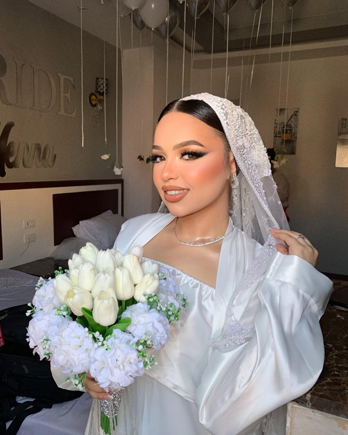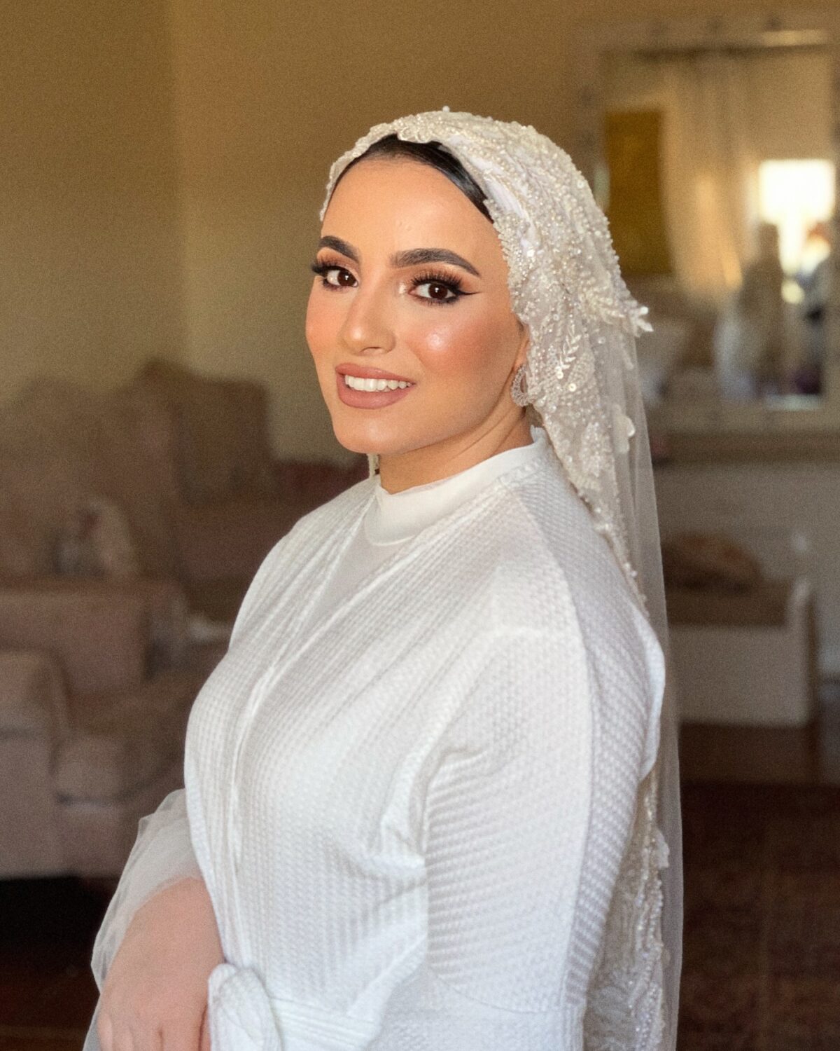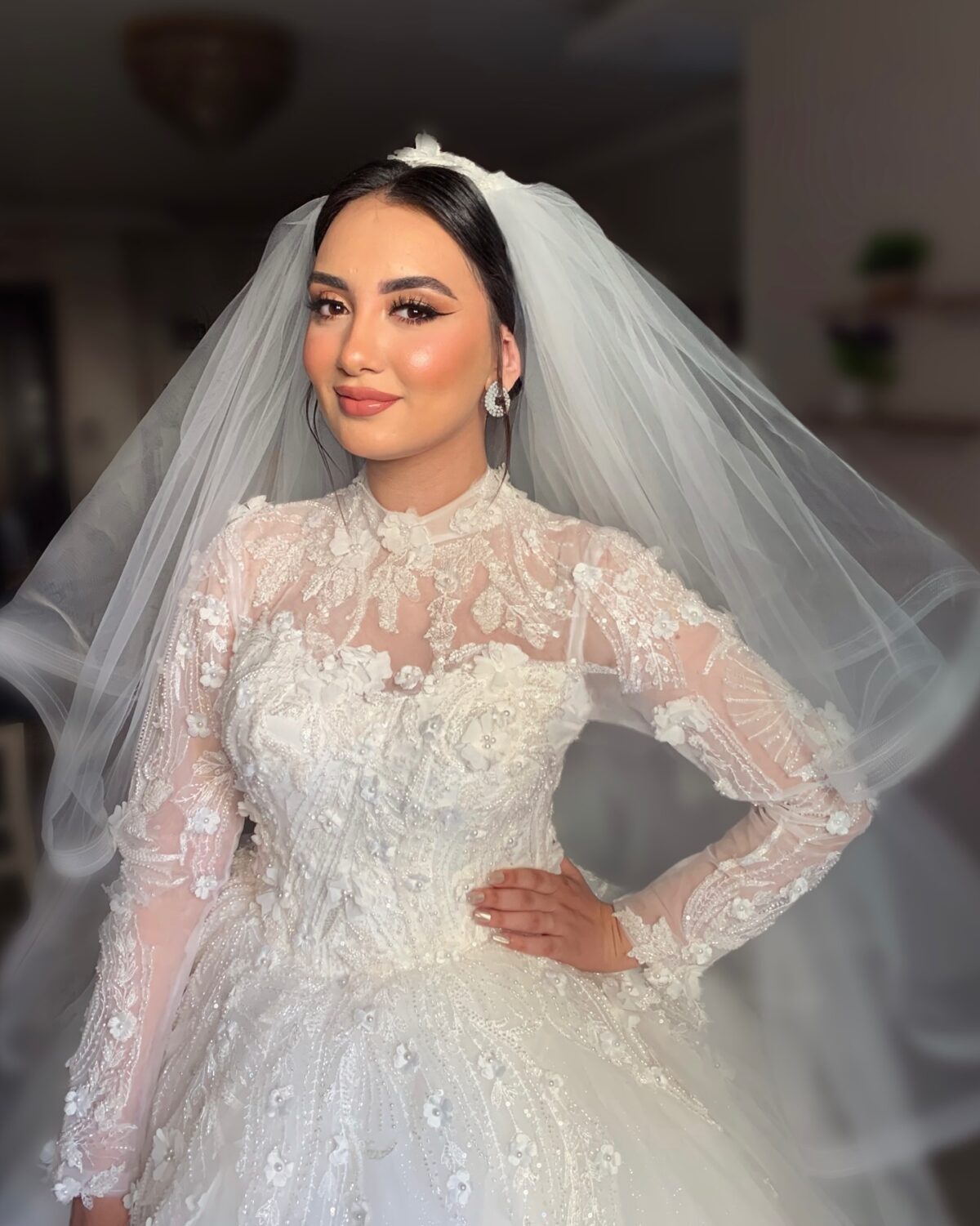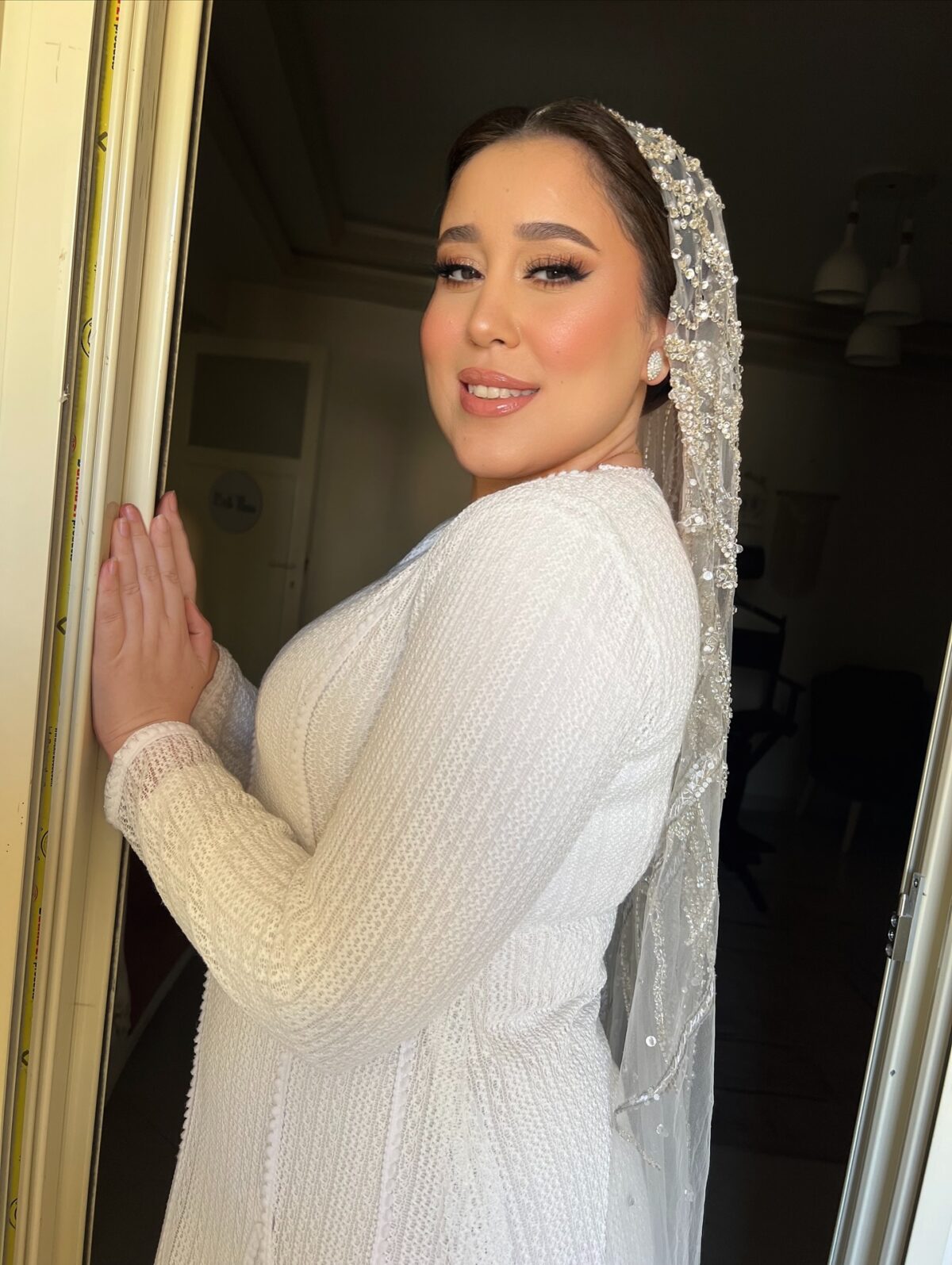 كمان بتساعد كل عروسة في اختيار التصميم المناسب لفستانها، سواء الطرحة الطويلة أو القصيرة، حسب شكل الفستان وتسريحة الشعر. الهدف دايمًا إن كل عروسة تبقى راضية عن شكلها في الآخر.