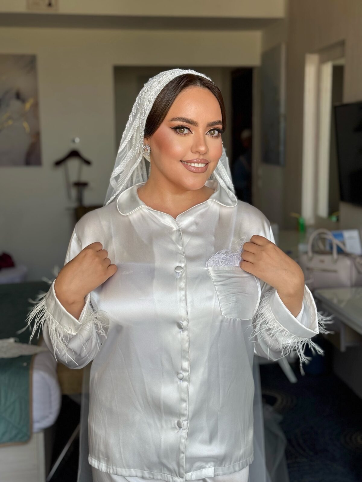 كمان بتساعد العروسة تختار شكل الطرحة اللي تناسب طولها، شكل وشها، ونوع الفستان. الهدف دايمًا إن الشكل العام يكون متناسق ومريح من أول لحظة لآخر اليوم.