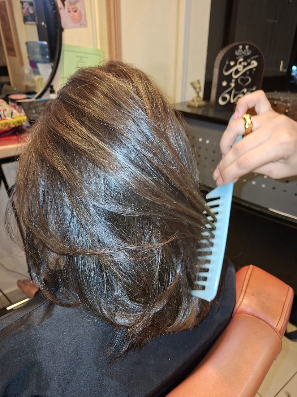 القص بيتعمل بهدوء، وكل حاجة بتتراجع معاكي خطوة بخطوة. سواء محتاجة قصة جديدة أو تعديل بسيط، الفريق هناك بيساعدك تختاري اللوك المناسب ليكي، وشكل وشك، وطبيعة شعرك. التصفيف كمان بيكون مناسب للمناسبة اللي رايحة ليها.