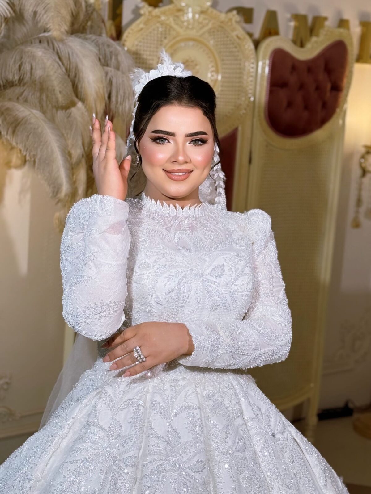 الراحة عنصر أساسي في أي طرحة، وده شيء واضح في شغل جنى جمال. الطرحة لازم تكون خفيفة وسهلة في الحركة، خصوصًا إن يوم الفرح بيبقى طويل وفيه تنقل وحركة كتير. التصميم الصح بيساعد العروسة تتحرك براحتها من غير إحساس بثقل أو إزعاج، وده بيديها ثقة وراحة نفسية طول اليوم.