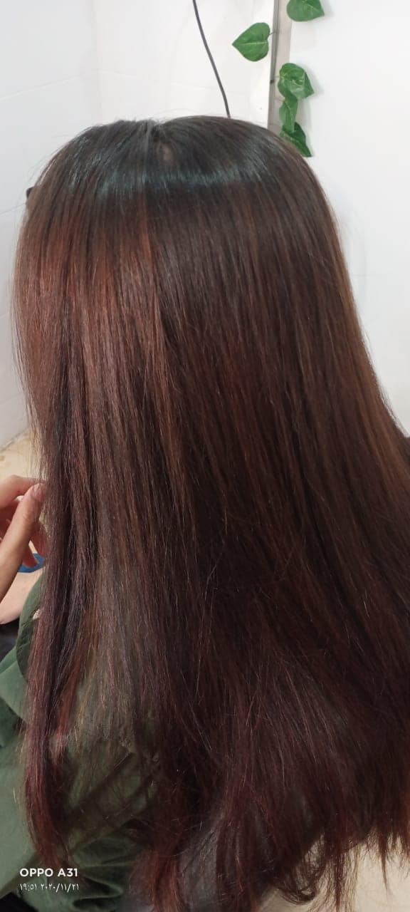 لو ناوية تعملي صبغة، فيه درجات كتير بتناسب كل الأذواق. لكن اللي يفرق هو إنهم بيفكروا معاكي في اللون المناسب ليكي، مش بس الموضة. بيعملوا اختبار على خصلة صغيرة، وبعد كده بينفذوا الصبغة خطوة بخطوة علشان تطلع مظبوطة وتحافظ على شعرك.