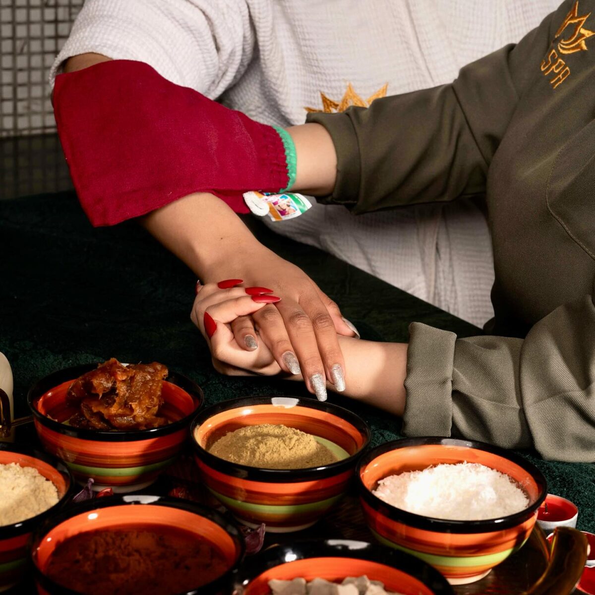 أول حاجة بتميز The Spa هي الحمامات العلاجية والمغربية اللي بيقدموها بجودة عالية جدًا. الجلسة بتبدأ بالبخار عشان تفتح المسام، وبعدها بيستخدموا الصابون البلدي والطمي المغربي واللوفة الأصلية لتنضيف الجسم بعمق. النتيجة إن الجلد بيبقى ناعم، والبشرة لونها موحد ومليانة نضارة. دي خطوة أساسية لأي عروسة قبل الفرح، لأنها بتخلي الجسم كله شكله صحي ومشّع.
