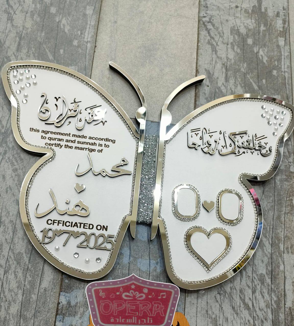 ومن التفاصيل الصغيرة اللي ليها تأثير كبير، هما دبابيس العروسة. القطع دي بتتعمل بالليزر، وعليها اسم العروسة أو كلمة زي "العروسة" أو "ملكة اليوم"، وتتوزع على الشنط، الكروت، أو حتى تتحط كجزء من الهدايا أو التجهيزات. حاجة بسيطة بس بتسيب انطباع جميل وبتفرّق في الصور.
