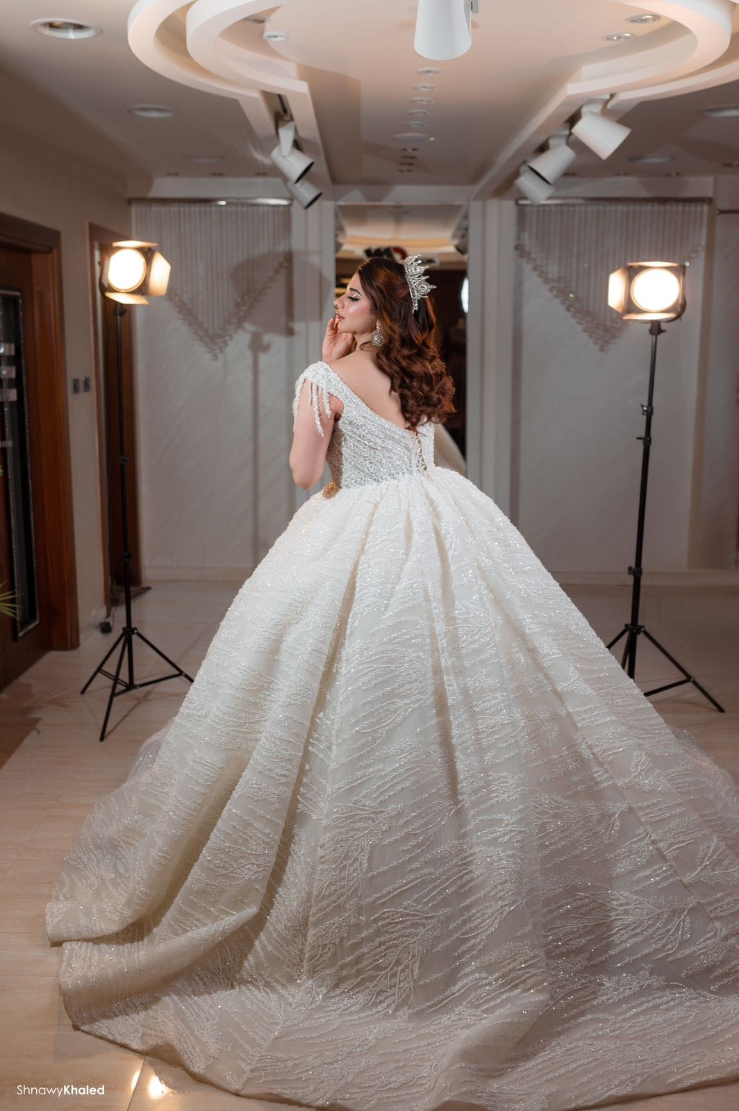 الفساتين الموجودة في الأتيليه متنوعة جدًا، يعني سواء بتحبي التصميمات الكلاسيكية الهادية أو الفساتين اللي فيها تطريز وشغل يدوي، أكيد هتلاقي حاجة تعجبك. كل فستان هناك معمول بخامات محترمة زي التول والدانتيل والساتان، وده بيدي الفستان شكل فخم من غير ما يكون متكلف.