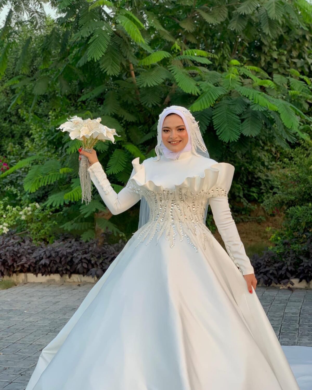 كمان في ميزة مهمة وهي إنهم بيعملوا تصاميم حسب الطلب. يعني لو عندك فكرة معينة أو موديل في بالك، ممكن يتنفذ ليكي بمقاسك وبالخامة اللي تختاريها. وده بيساعد كل عروسة تطلع بشكل مختلف ومميز في يومها، من غير ما تضطر تختار من حاجة جاهزة مش على مزاجها.