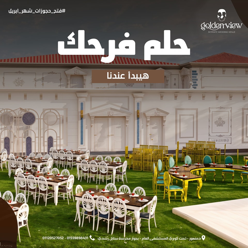 قاعة جولدن فيو مساحة فخمة وتنظيم عملي ليومك الكبير