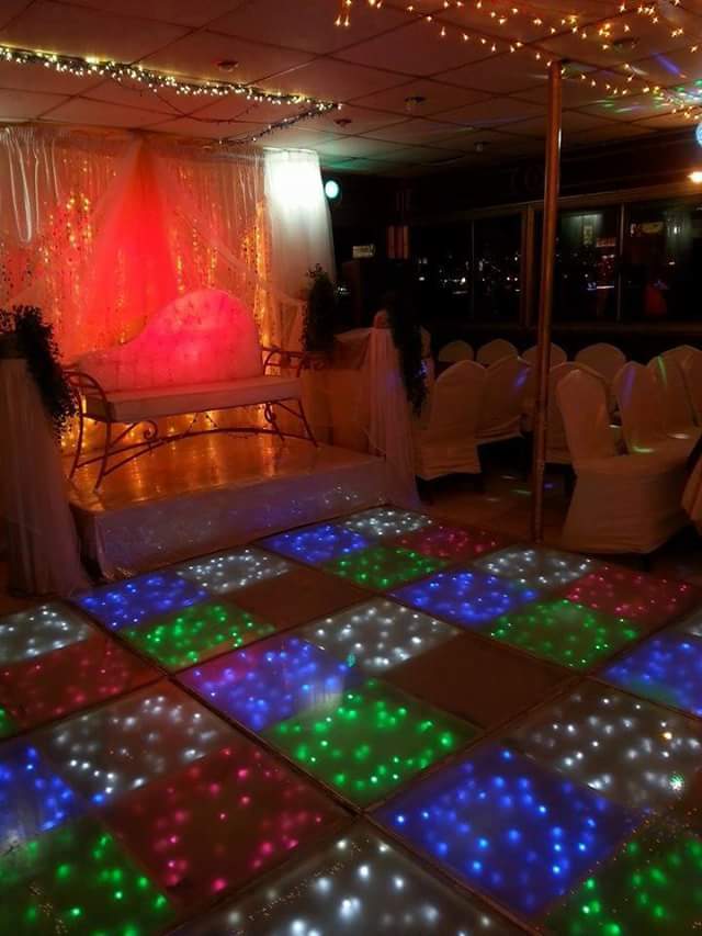 تقدر تضيف مؤثرات إضاءة بسيطة زي LED أو سبوت لايت عشان تبرز فقرات الحفل بشكل أفضل