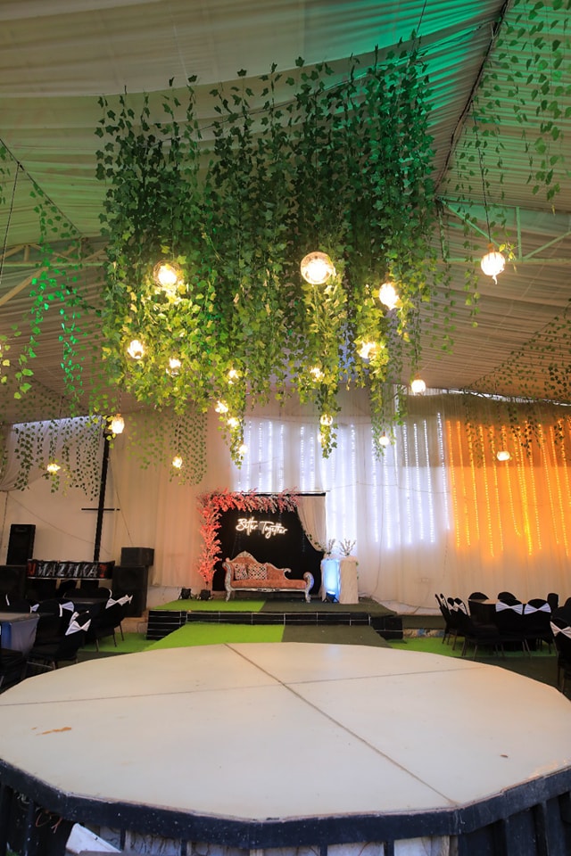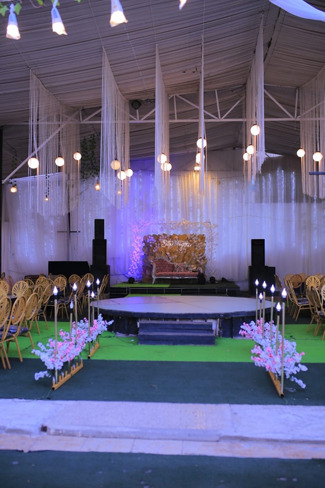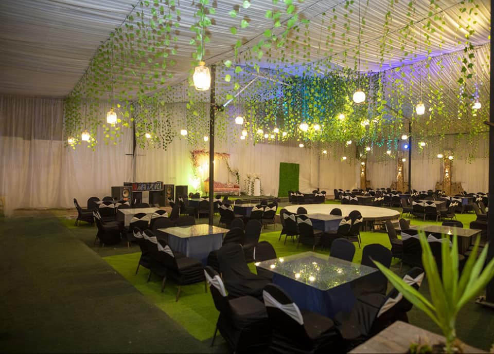 طريقة توزيع الكراسي والطاولات بتكون مرنة، تقدر تنسقها على حسب عدد الضيوف أو شكل الحفل اللي في بالك، سواء دايرة، صفوف، أو شكل مستطيل.