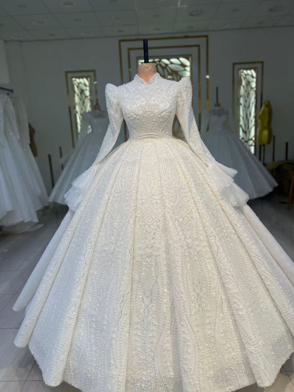 ولو العروسة عندها موديل معين في دماغها ومش لاقياه جاهز، المكان بيوفّر خدمة التفصيل. الفستان بيتعمل بالقماشة اللي تختارها العروسة وبالقصّة اللي تناسب جسمها، وده بيديها فرصة يكون عندها فستان مميز ومخصوص ليها مش موجود عند حد تاني.