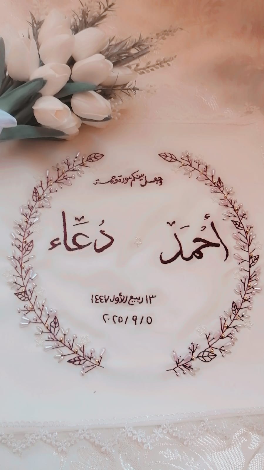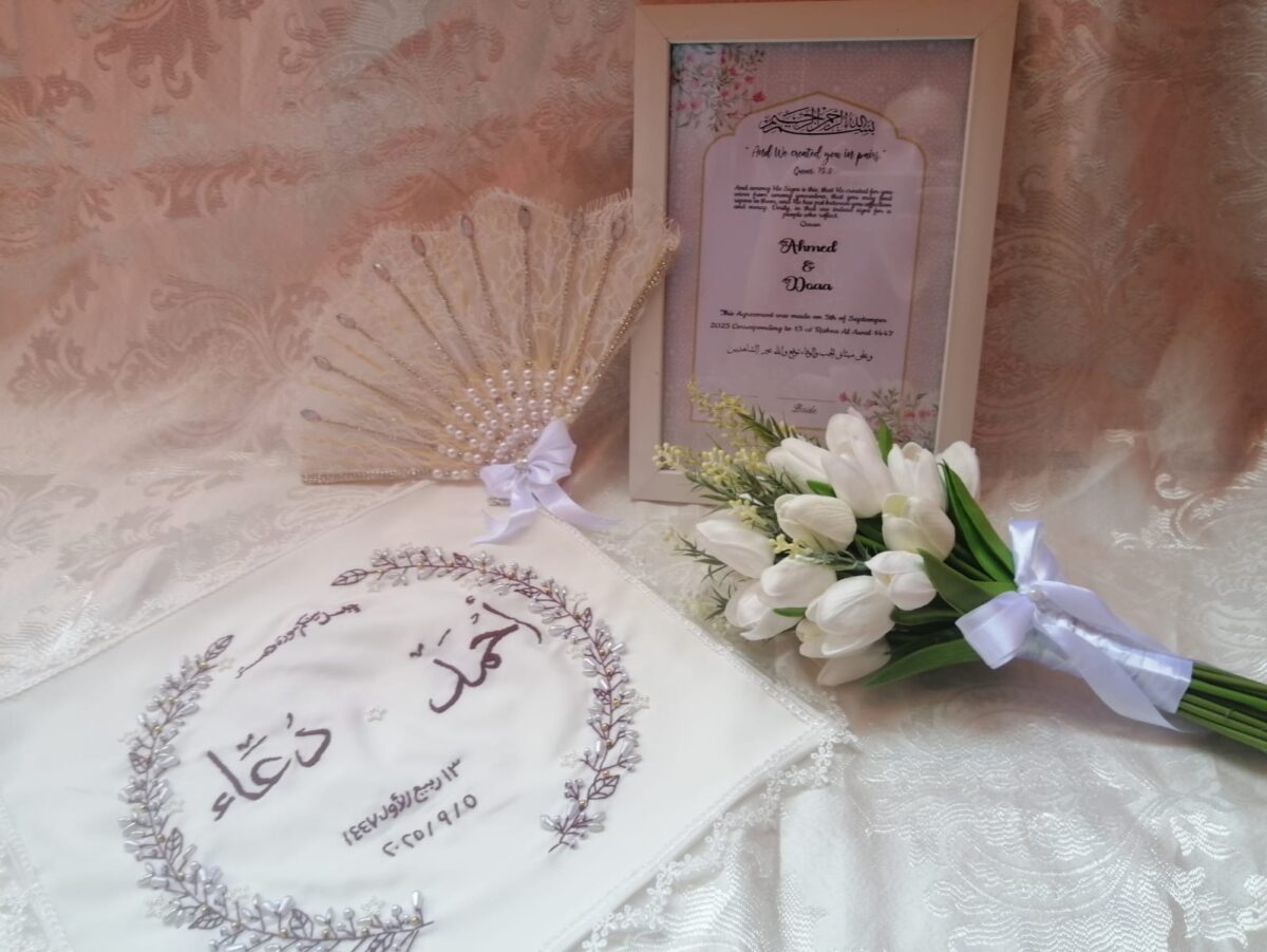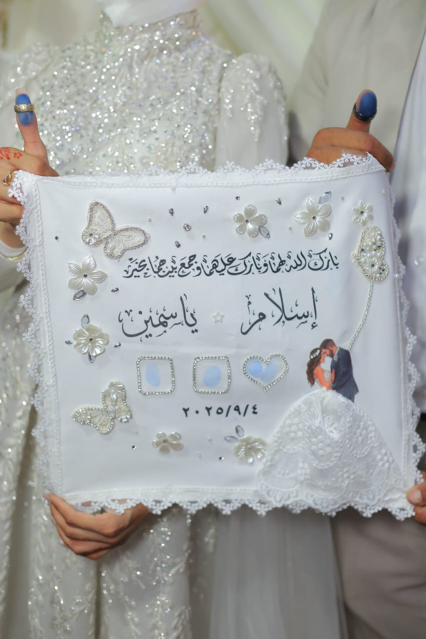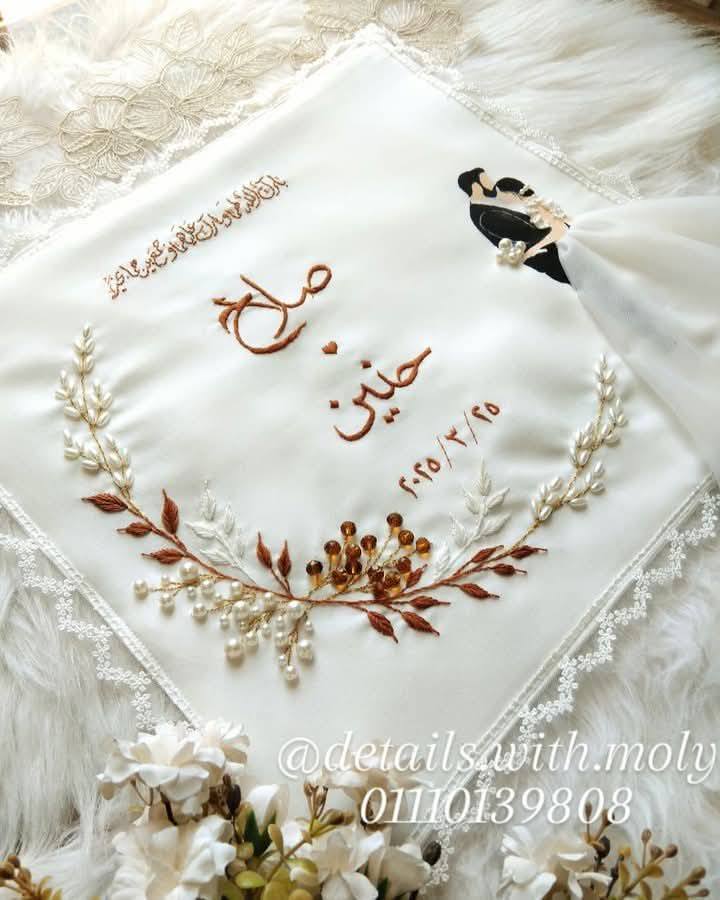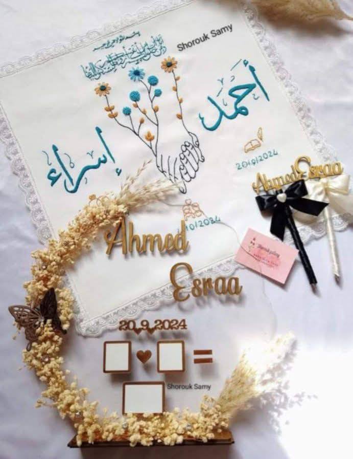- تطريز أو طباعة اسم العريس والعروسة.