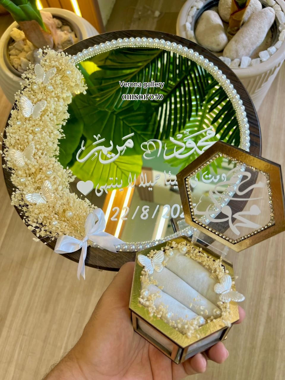 - مرايات محفورة بالليزر عليها اسمك وتاريخك بخط أنيق.