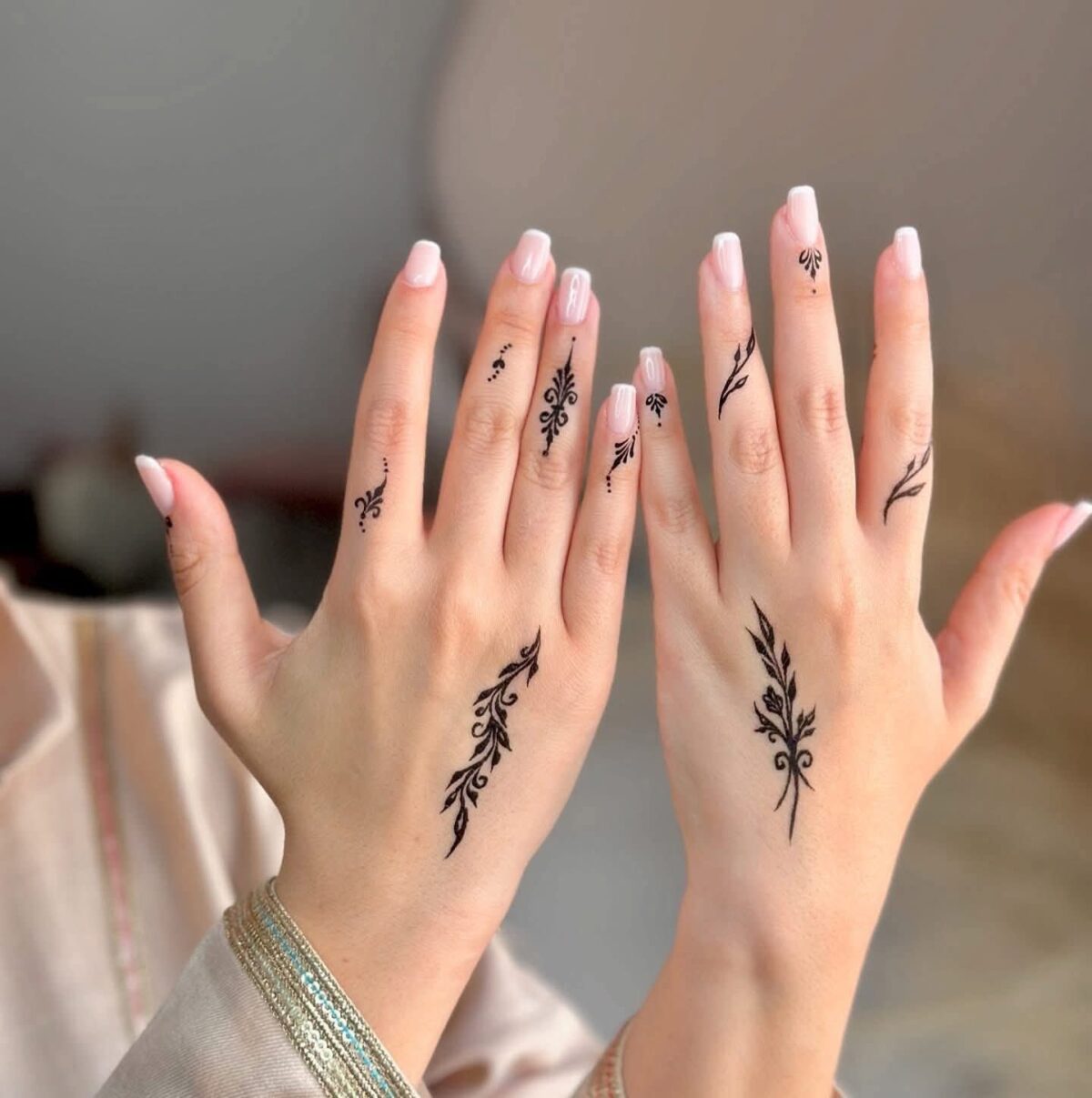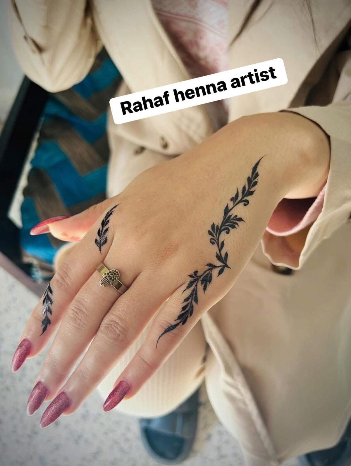 كمان التنسيق بين رسمة الحنة وباقي الإطلالة مهم جدًا، زي الميكب والفستان، علشان الشكل النهائي يكون متناسق. علشان كده التواصل مع الحنانة قبل التنفيذ بيساعد في تحديد كل التفاصيل والوصول لأفضل نتيجة.