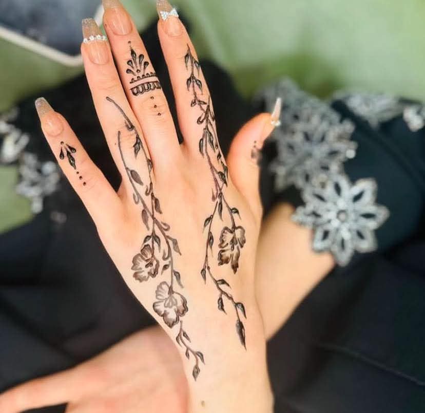 الحنة بقت فن ليه أشكال كتير تناسب كل الأذواق، فيه رسومات بسيطة وناعمة بتدي شكل رقيق يناسب العروسة اللي بتحب اللوك الهادي، وفيه نقوش كبيرة مليانة تفاصيل بتكون واضحة أكتر في الصور وبتبرز جمال الإيدين بشكل ملفت. اختيار الرسمة بيكون على حسب ذوق العروسة واستايلها علشان تكون متناسقة مع باقي الإطلالة.
