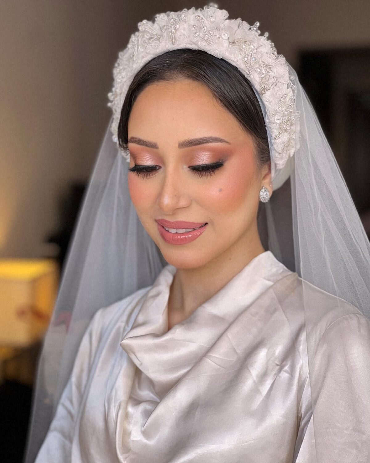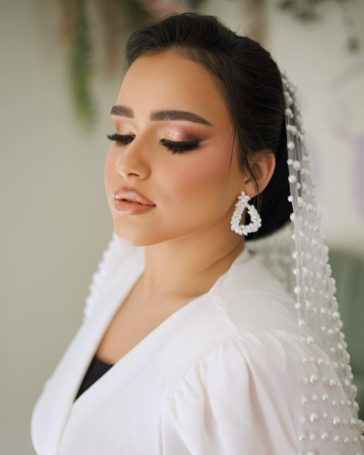 ياسمين عبد الله كمان بتركّز جدًا على ثبات الميكب. بتستخدم مثبتات قوية وتوزعها مظبوط عشان اللوك يفضل ثابت وطبيعي طول اليوم مهما كانت الحركة أو الحرارة. وده بيدي للعروسة إحساس إنها هتفضل جميلة ومضبوطة من أول لحظة لحد آخر اليوم.