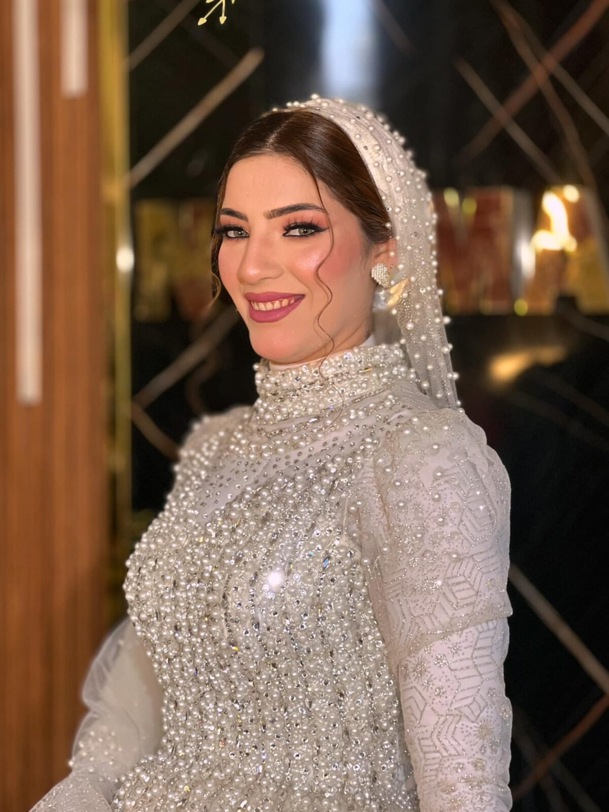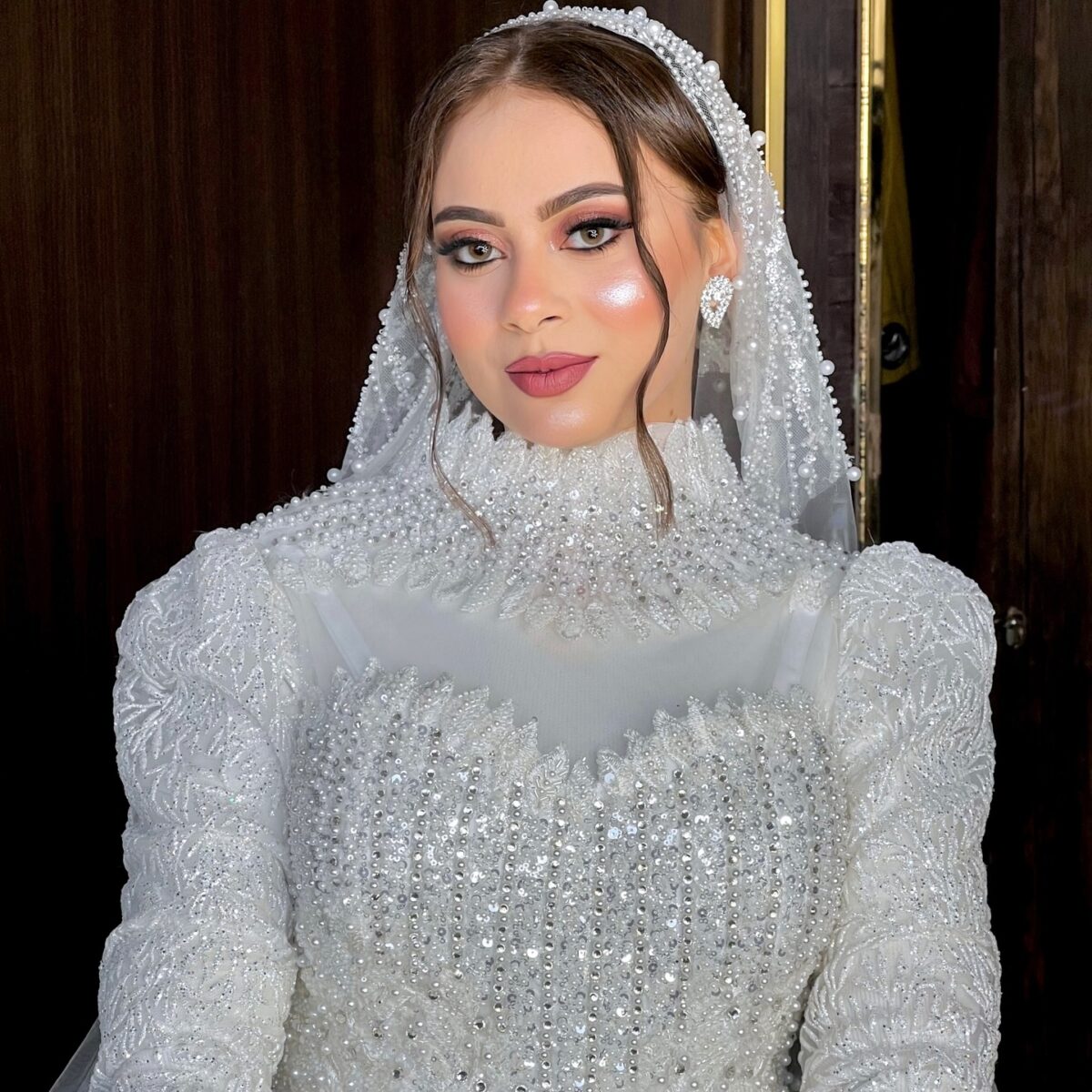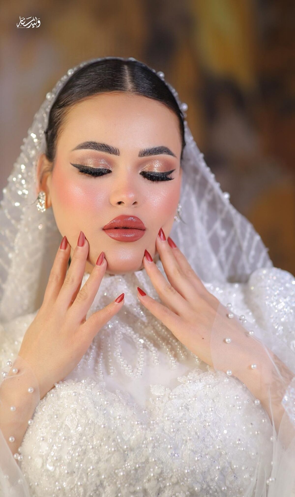 نسمة جمال كمان بتركّز جدًا على ثبات الميكب. بتستخدم مثبتات قوية وتوزعها مظبوط عشان اللوك يفضل ثابت وطبيعي طول اليوم مهما كانت الحركة أو الحرارة. وده بيدي للعروسة إحساس إنها هتفضل جميلة ومضبوطة من أول لحظة لحد آخر اليوم.