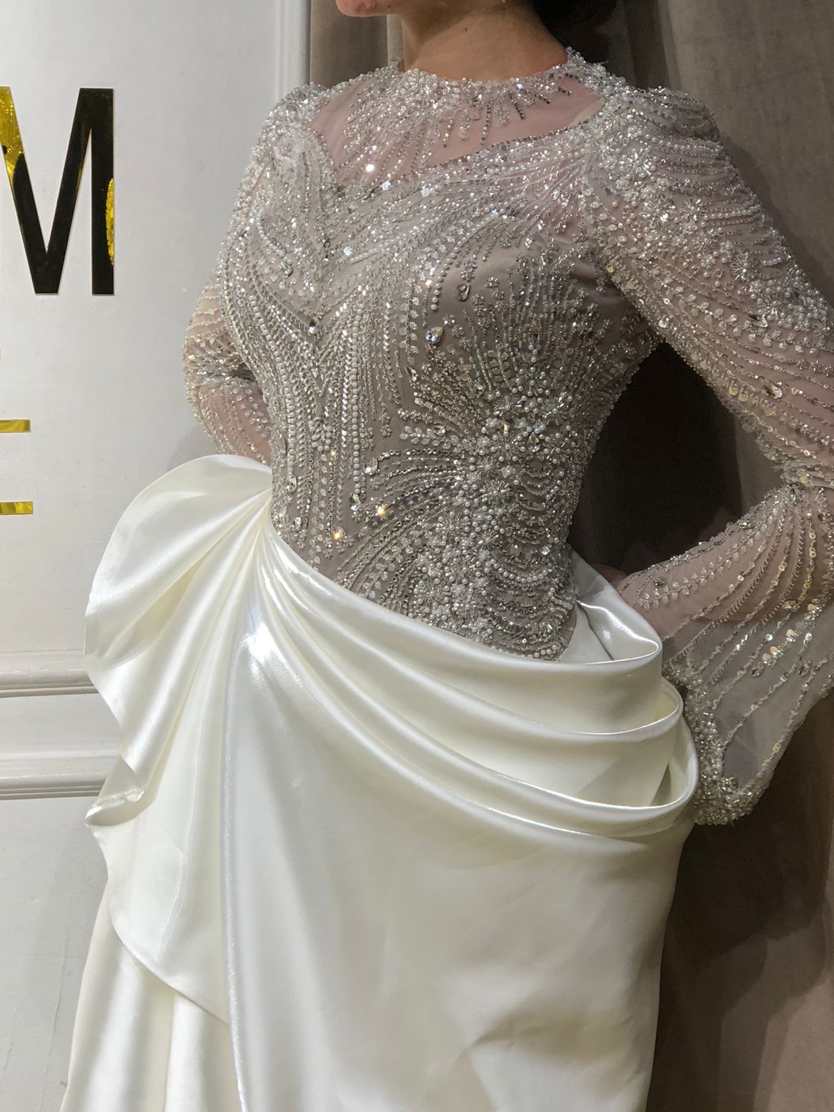 أول ما تدخلي المكان هتلاقي إن الجو هناك مريح ومرتب يخليكي تختاري براحتك. الفساتين متعرضة بشكل يخليكي تشوفي كل موديل بوضوح وتشوفي الخامات والتطريز من غير أي زحمة. الإضاءة كمان معمولة علشان تظهرك الفستان بالشكل الحقيقي اللي هتشوفيه في يوم فرحك. فريق العمل هناك بيستقبلك بذوق وصبر، يسمعك الأول علشان يفهم ذوقك ويرشحلك الموديلات اللي تليق عليكي من غير ما يضغطك.