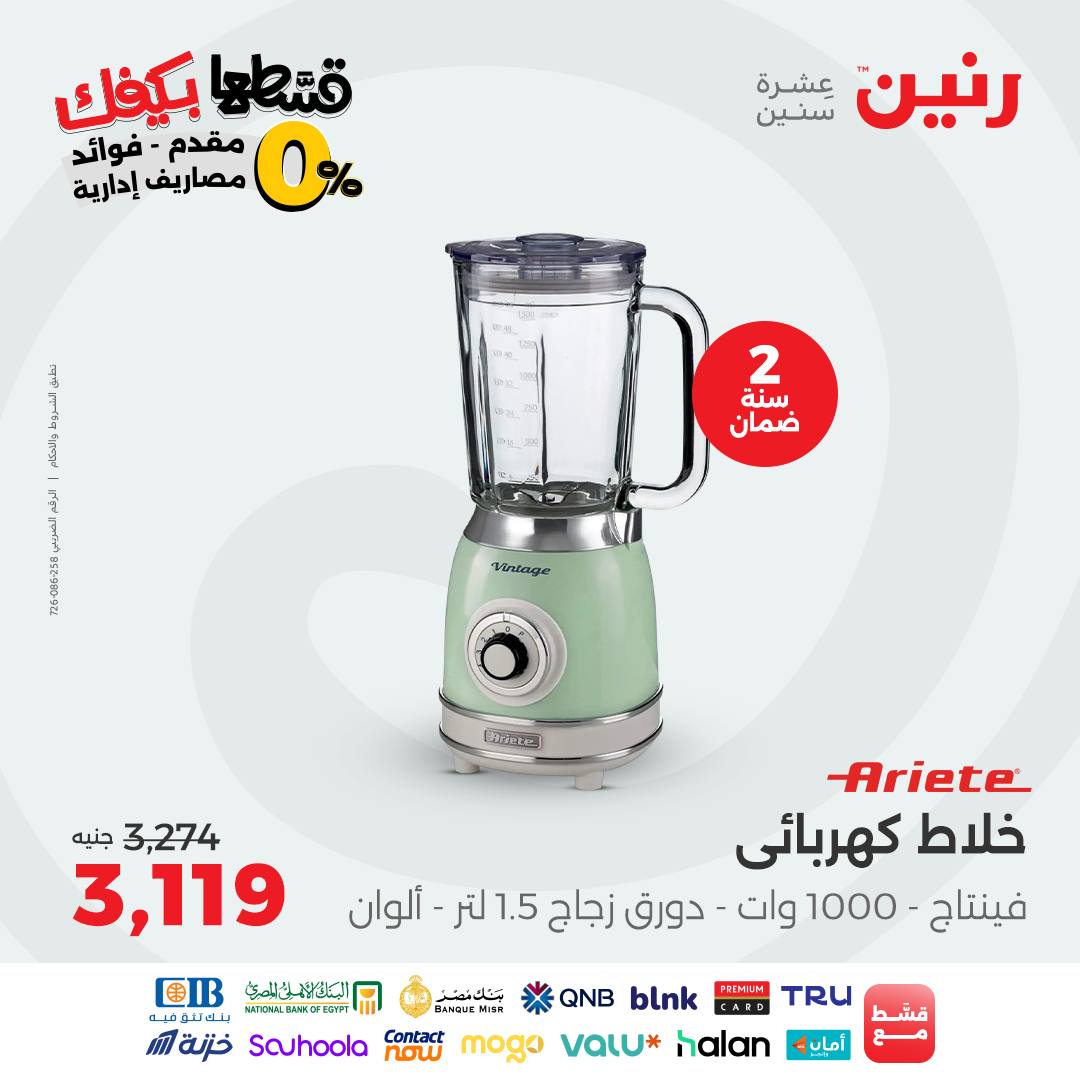 في فروع رنين المنتشرة في كل المحافظات، هتلاقي كل أنواع الأجهزة اللي ممكن تحتاجها لتجهيز بيتك. عندهم تلاجات، غسالات، بوتاجازات، شاشات، ديب فريزر، سخانات، وتكييفات، وكمان الأجهزة الصغيرة اللي مش أي بيت يستغنى عنها زي الميكروويف، الكاتيل، المكانس، الخلاطات، والعجّانات. المعارض متقسمة بطريقة مريحة تخليك تشوف كل المنتجات بوضوح وتختار اللي يناسبك.