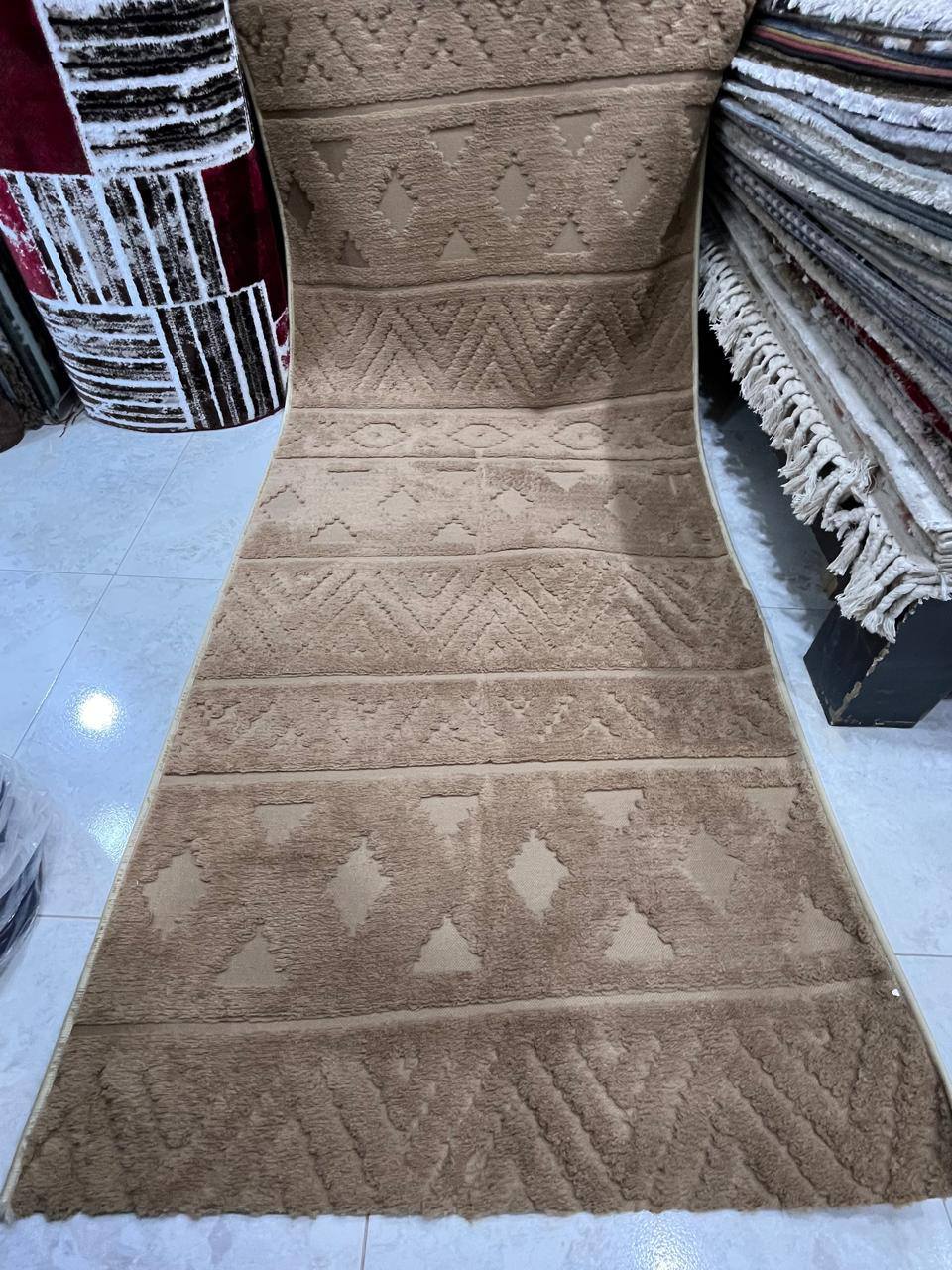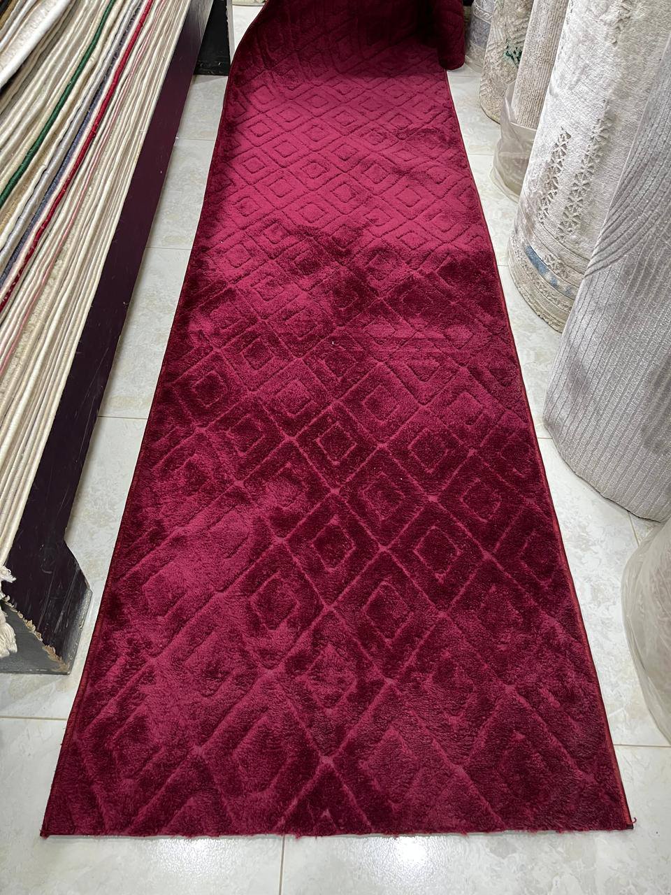 أول ما تدخل المكان بتلاحظ إن القطع النسجية متقسمة بطريقة منظمة تسهل المقارنة بين الألوان والموديلات. في درجات هادية تناسب غرف النوم وتدي إحساس بالراحة، وفي درجات أعمق تناسب الريسبشن وتضيف للمكان شكل أنيق. وفي موديلات فيها دمج بسيط بين أكتر من لون أو رسومات هادية تدي شكل مختلف للمكان من غير ما يكون مبالغ فيه.