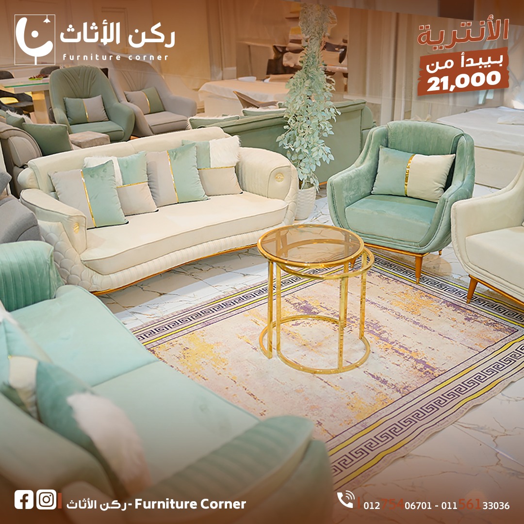 اللي بيميز ركن الأثاث إن قطعهم فيها روح مودرن هادية من غير مبالغة. هتلاقي أوض نوم تشطيبها نضيف وخشبها متين، وركنات بألوان مريحة تناسب المساحات الصغيرة والكبيرة، وسفرات شكلها عملي من غير تفاصيل كتير. التنسيق بين الخشب والقماش واضح إنه متظبط، واختيار الألوان غالباً بيكون درجات هادية زي البيج والرمادي والخشب الفاتح، ودي بتناسب أي ديكور جديد بسهولة من غير ما تحتاج تغييرات في باقي البيت.