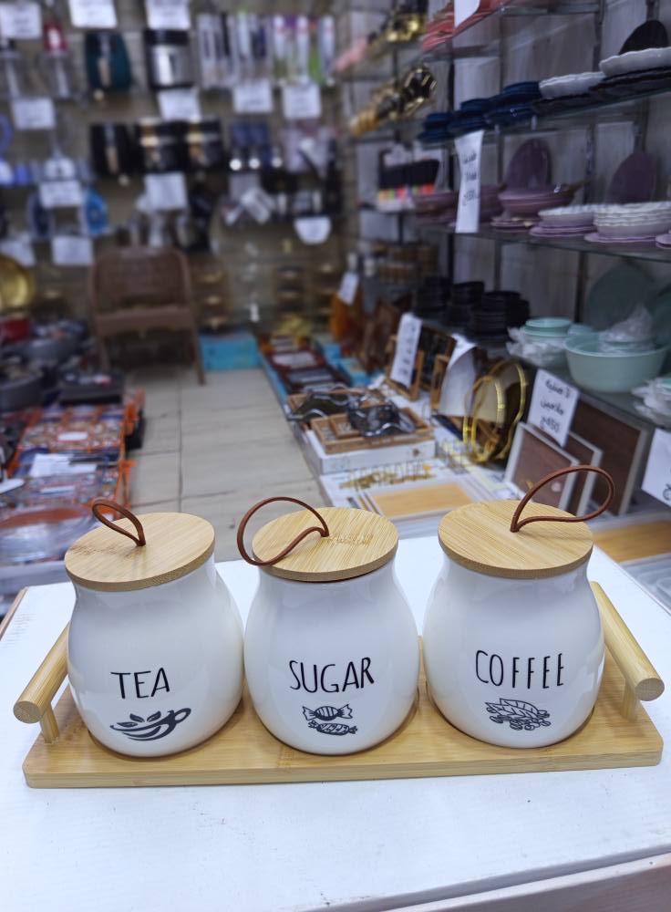 أما قسم السفرة والتقديم، فمليان أطقم أطباق بورسلين وزجاج بألوان شيك ونقوش بسيطة تناسب المودرن والكلاسيك، ومعاها كاسات عصير وفناجين شاي وقهوة. فيه كمان صواني تقديم وأباريق عملية وأنيقة بتكمّل شكل السفرة وتسهّل الضيافة سواء في المناسبات أو الروتين اليومي.